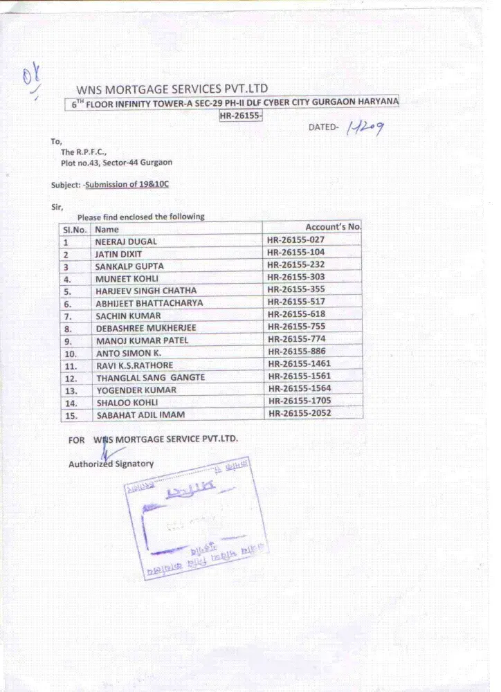 I have submitted my epf claim to WNS Gurgaon in last week of Sep 2009 through my friend. Thier consultant submitted it on 01st Dec 2009 in gurgaon epf office, I have the reciept of recieval the application by gurgaon office.