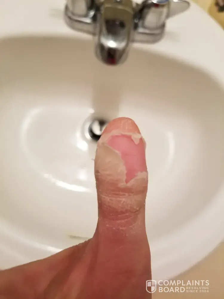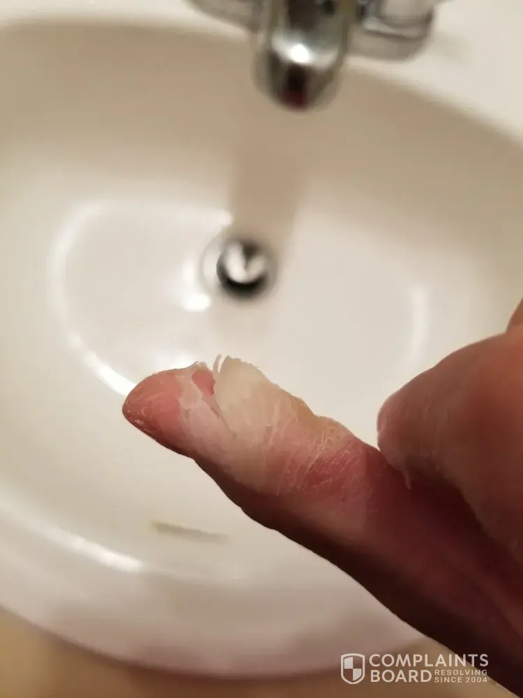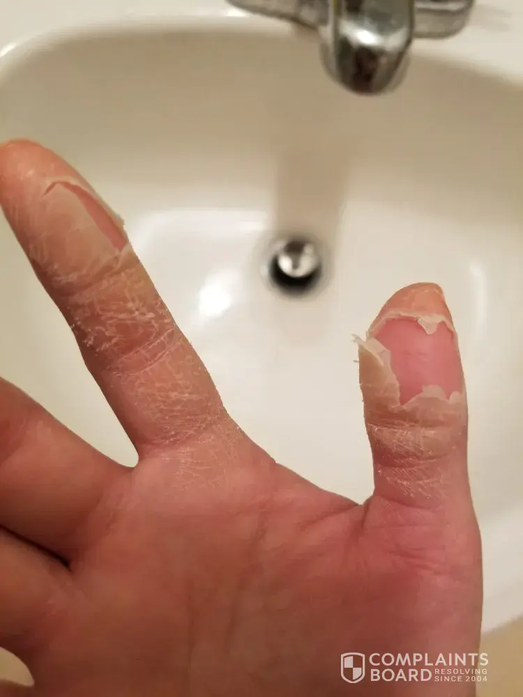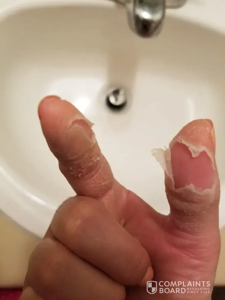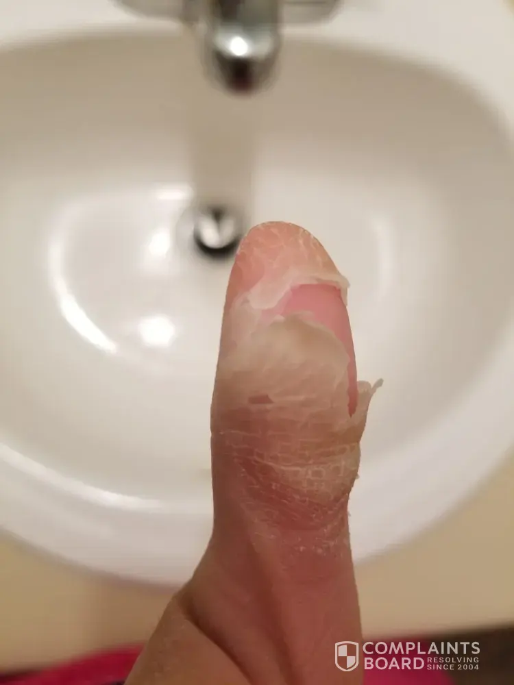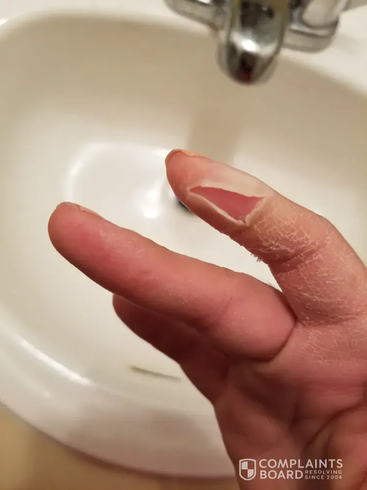 I tired the revlon nail enamel removal "extra gentle" and the product dried my finger skin so hardly that my skin started to stretch and peel off . I already sent an email to the customer service but they haven't responded jet. I have to use a glove at work and home in order to protect my fingers from physical contact because it hurts so much. I'm still waiting for a response