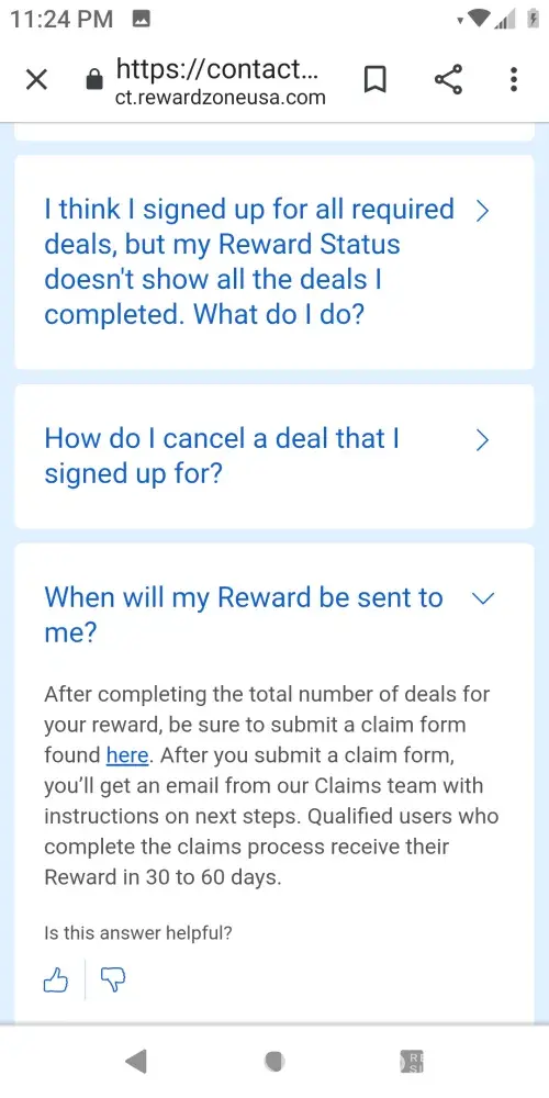 I completed 1 gold, 1 silver, and over 8 platinum deals to qualify for reward. I've emailed 5 times starting over 10 days ago and added info@rzuhelpcenter.com and contact@rzuhelpcenter.com as detailed in their instructions for response and claim reward. I have gotten no response! I have proof of my completed deals in email and proof I sent emails all within the 20 days to complete for reward. I believe this is a scam!