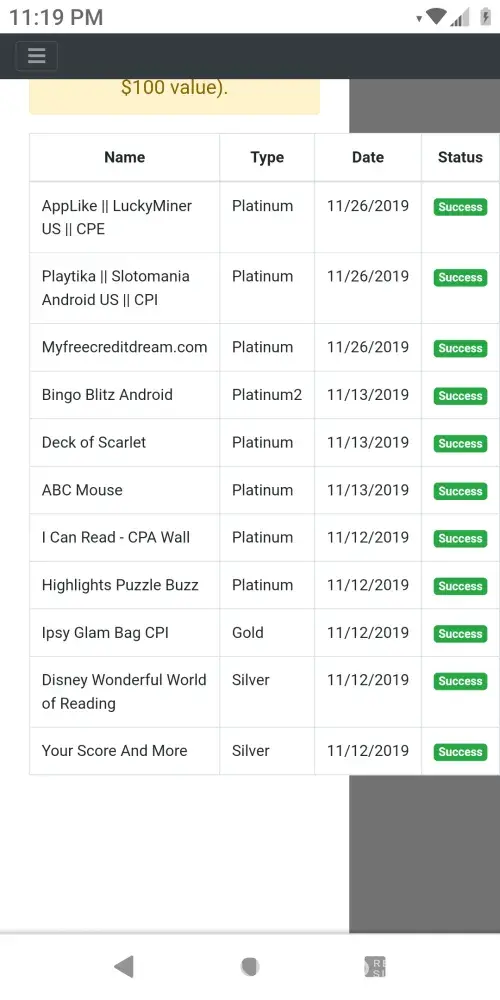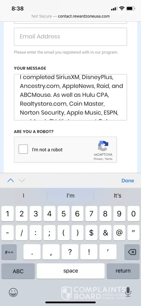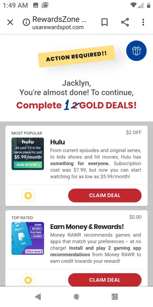 Why does it keep saying that? Will I even get my reward and when would I get it by? Or is all this just a bogus scam to try and get people to do basically a bunch of nothing for nothing. Except to get people to sign up for all these trials and make purchases on things they really didn't want or wasn't even interested in. And not to mention all the data we use and all the storage space we take up for downloading unnecessary items just so we could compete all the tasks. Below are screen shots so you can see for yourself