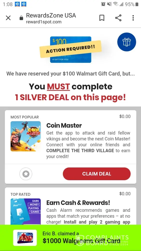 I have participatdd in ghis program the last 6 years, 2 times 1 every 24 months per their rules, I completed the requireme ts and fulfilled all the requirements like I have the other 2 times, I received email stating I have fulfilled required participation then they never sent claim form or would even respond then finally k am told k am blacklisted and no l ok nger eligible to do program no reason nothing, I did nothing wrong to be blacklisted my money spent for participation wasted I am battling colon cancer and I am single and live alone on disability I dont have lots mlney they hve no basis to not honor theur rewards. this is 1 email from them stating I had completed requirements: — forwarded message — from: contact | rzuhelp date: mon, nov 4, 2019, 5:13 pm subject: #d08d7027-f76a-11e9-a879-ecb1d7738992-claim incentive - _ to: [protected]@gmail.com thank you for reaching out to us! we see here that you have already received a qualification message. if you have no record of this email in your inbox we invite you to check your spam folder. please reach out to claims@rewardzoneclaims.com directly for any further inquiries and be sure to add the email address to your safe senders list in order to make sure you receive emails about the processing of your claim. regards, rzu here is another from rzu hello, we see that you have signed up for the required amount of offers to qualify for the incentive! we are in the process of verifying your offers and preparing the necessary documents for your claim. if we need any more necessary documentation, you will receive further instructions in a follow-up email within 10 business days (not including holidays and weekends). please note that if you are qualified, we will issue you an online claim form within 10 business days through adobe echosign, so please add [protected]@echosign.com to your safe sender email list. thank you, reward zone usa another email: I submitted my claim & I have not received any forms thru echosign to be signed & returned to you. thank you hide quoted text on thu, oct 31, 2019, 3:17 am jacqueline stark wrote: I am just checking the status of my claim forms on the $1 000.00 walmart gift card. thank you for your time & help. god bless jacqueline stark on fri, oct 25, 2019, 4:11 am jacqueline stark wrote: great, thank you so much! on wed, oct 23, 2019, 9:51 am contact | rzuhelp wrote: hello, we see that you have signed up for the required amount of offers to qualify for the incentive! we are in the process of verifying your offers and preparing the necessary documents for your claim. if we need any more necessary documentation, you will receive further instructions in a follow-up email within 10 business days (not including holidays and weekends). please note that if you are qualified, we will issue you an online claim form within 10 business days through adobe echosign, so please add [protected]@echosign.com to your safe sender email list. thank you, I never received claim form & no one would even reply to my emails finally I receive this email with no explanation no reason, nothing, after bejng told k had completdd everythknv, no one even explain I did nothing to be blacklisted and I am willkng to fight this in. ourt because they are nor right dokng something like this. have never responded why I am suppose to be blacklisted I did nothing to be black listed this needs to go to arbitration immediately I fulfilled all requirements and more this would have been the 3rd time in 6 years I have completed this program. I have been in & out of hospital last few years battling colon cancer & I used my little money to complete participation for the gift card please settle this promptyly. you are wrong and I am willing to fight this to the end because I didnt do anything to b blacklisted at all. jacquelkne stark hide quoted text on sun, nov 17, 2019, 2:20 am jacqueline stark wrote: can u please tell me why I have been put on a blacklist please? I know because I have not done anything to disqualify me from this incentive. I completed all required participation requirements. please givs me reazon I havd been put on a blacklist. god bless jacqueline stark email: [protected]@gmail.com on fri, nov 8, 2019, 11:50 am jacqueline stark wrote: can yoh please tell me why? on fri, nov 8, 2019, 9:40 am claims | reward zone claims wrote: hello jaqueline, unfortunately our claims verification team has identified that your account has been blacklisted and are no longer eligible to participate in our program. no explanation no reply I know the terms & requirements and I did nothing to be blacklisted or not given the $1000 00 gift card incentive they promise to reward you for completkng all requirements. sincerely jacqueline stark
