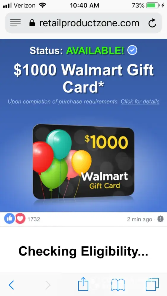 Read full complaint and 8 comments$1,000 walmart gift card