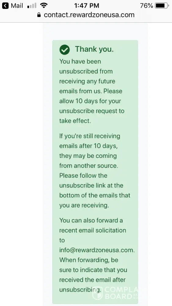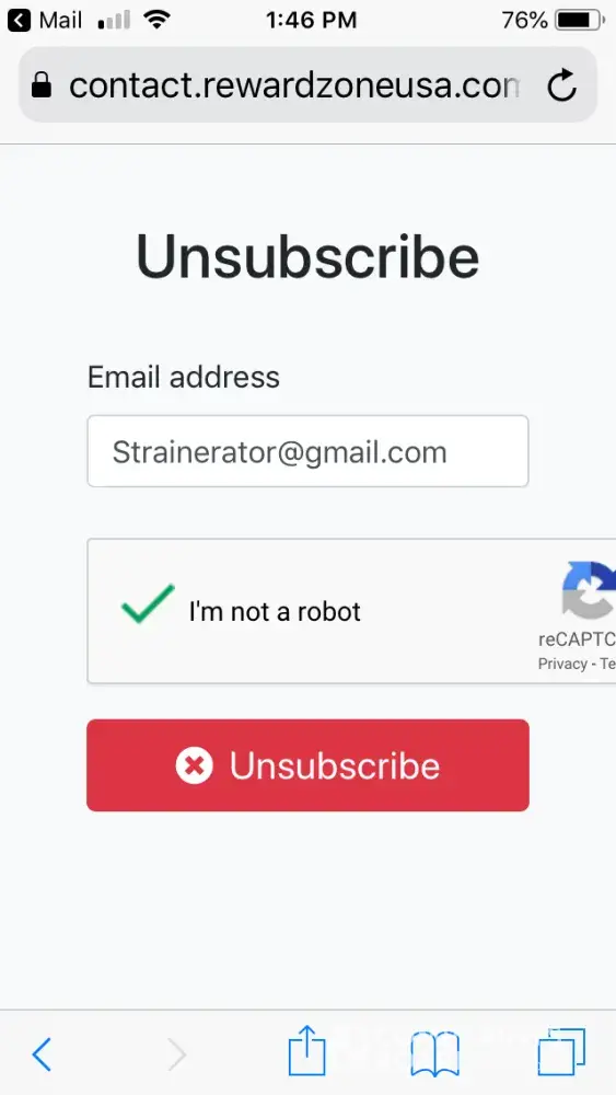 I unsubscribe from this email and keep getting emails could you please make them stopThese emails are very annoying I wish to no longer receive them I don't know how many times I have to unsubscribe but could you please look into it and see what you can do about it every time I try to get on certain apps the reward zone USA keeps coming up interfering with my phone