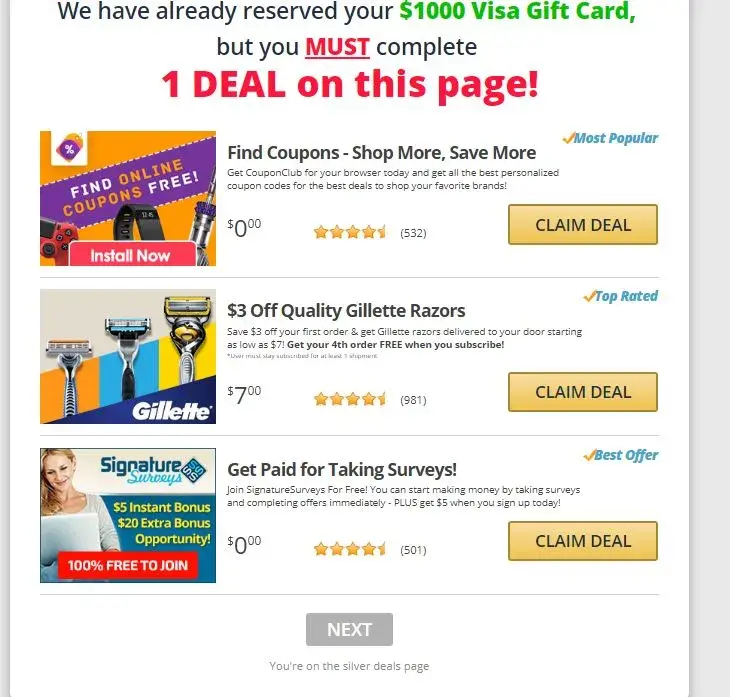 Hello i completed all of the tasks/deals that were for a $1000 paypal card, and once i completed the last 'silver' deal, it didnt load any page afterwards to claim the paypal card. i then went back and completed the silver deal THREE more times, and actually made purchases on two of those in order to complete them, and then.. nothing, and no response to my issue even after multiple emails and messages through your site.