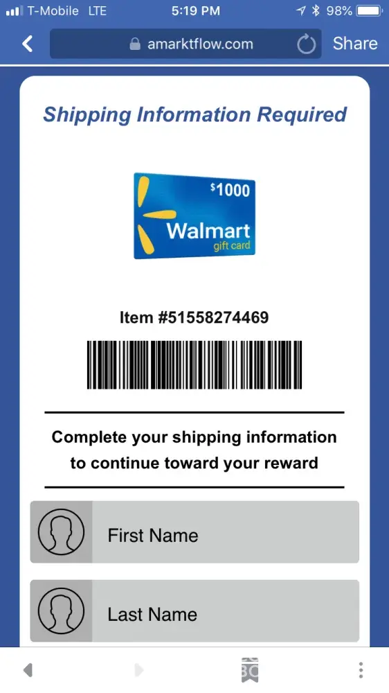 Read full complaint and 6 commentsI was told to except 1 more offer and I would receive my $1000 walmart gift card