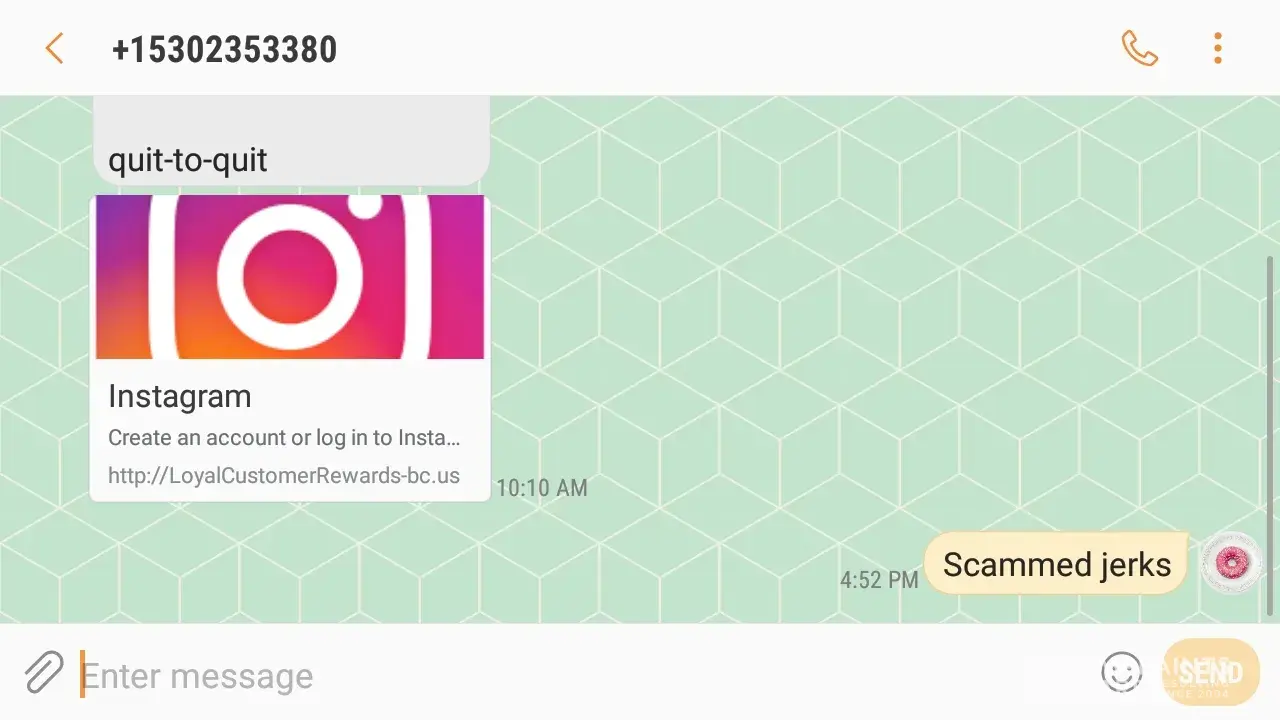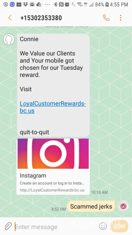 Instagram text message.