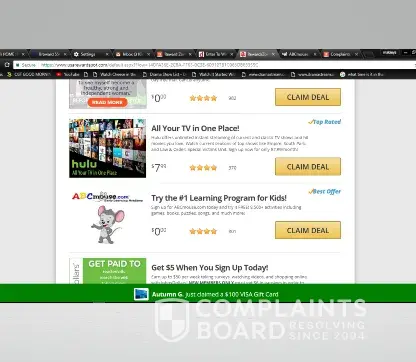Again those Ads pop up and I decided to give it one more go so I click on it again being my desperate and stupid self. Do you guys take pride in getting people hopes up so that in the end they can't get what they really want? I signed up For ABCMOUSE and what happens is that I just paid for something I won't be using and in the end, your page keeps saying. Claim an offer when I did and this is not my first time complain. I complain about the 1000 Wilmer card I work hard for using indulger for that one and completed the offer and in the end the website didn't do it part and kept saying claim a deal.