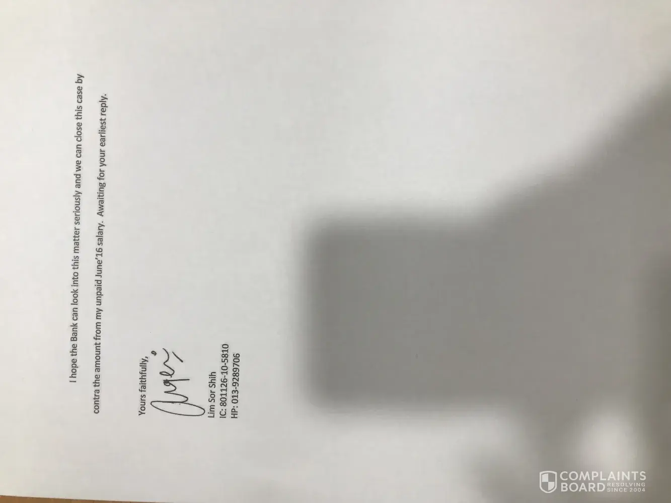 Pihak kami akan mengemukakan aduan kepada bank Negara jika tiada tindakan diambil,