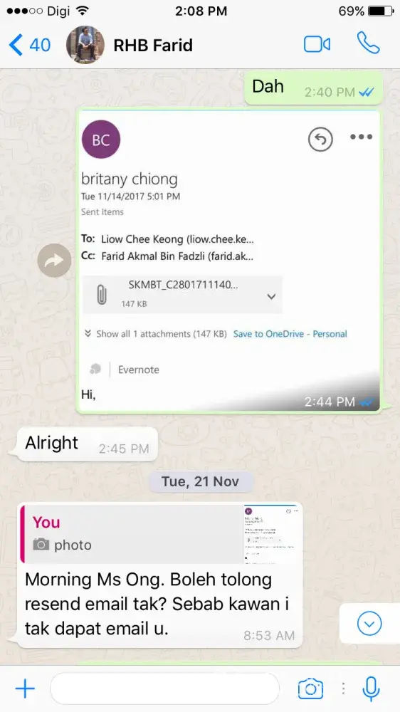 Later On, I got a call from Atiqah [protected]) and sent me the hard copy of the form and resign again on 11th Nov 2017.