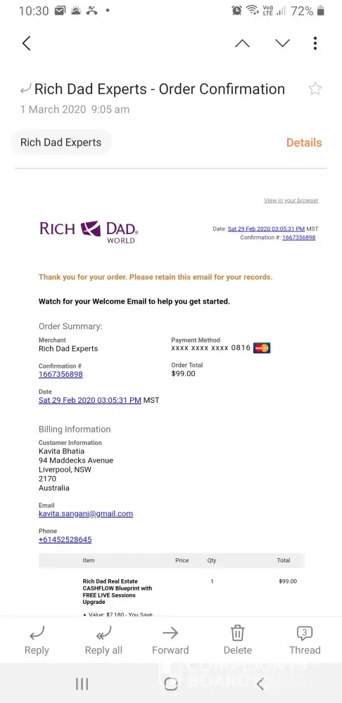 Rich Dad Coaching / Rich Dad Experts complaints: history and resolution overview
