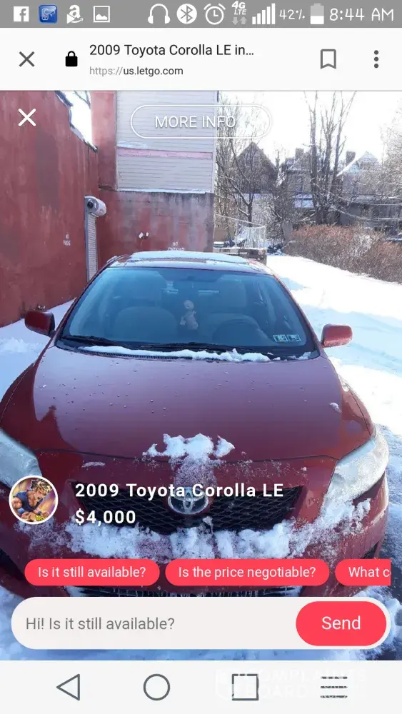 Husama Abdullah is a scam artist criminal that sells lemons. He is from middle easte buys cars runs them down then sells them to poor people in my town wilkinsburg Pennsylvania. He always sells rusted broken cars cars that have transmission problems and faulty wiring. Please don't let him post his cars on let go how manu people need gypped before you make this to stop happening