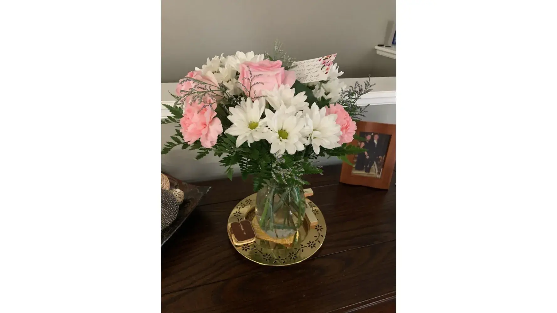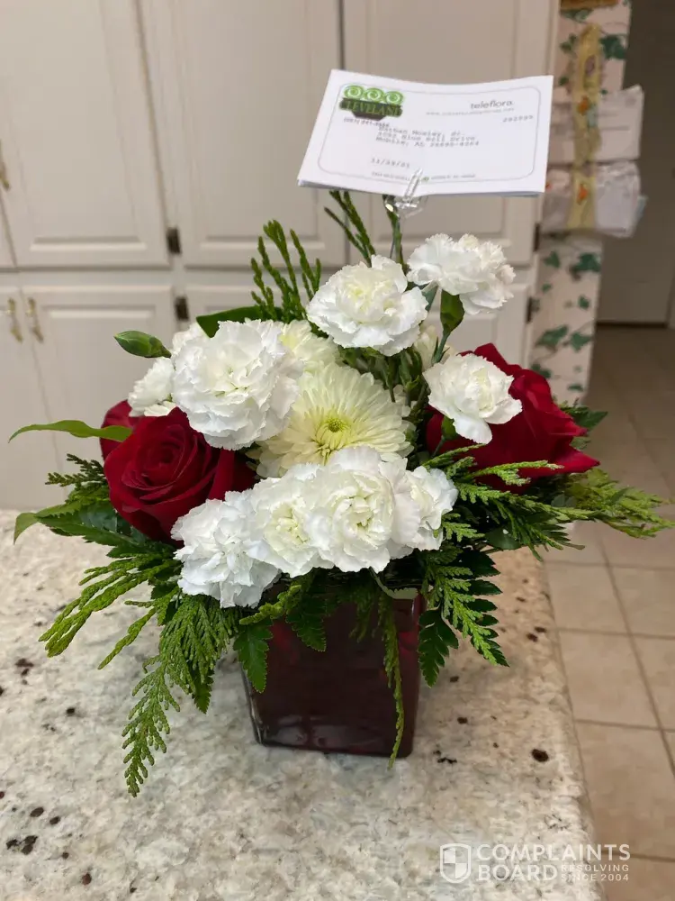 The floral arrangement delivered to Mr. Nathan Mosley, Sr. at 3052 Blue Bill Dr., Mobile, Alabama 36695 on November 29, 2021, is not the same floral arrangement that I ordered on the same date, for which I paid $61.99. Although I ordered it through Rita's Florist in Theodore, Alabama, the arrangement was filled by Cleveland the Florist in Mobile, Alabama. According one of the agents of Cleveland the Florist, said florist received only $29.99 for the arrangement. Specifically, when I placed my order, I left written instruction that my order should not include roses.