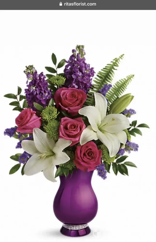 I ordered flowers for my parent's anniversary and paid an extra $19.99 for extra flowers and $3.99 for gift gift. $80 down the drain. The flowers were never delivered. I received a receipt to my email and then could not contact them. I ordered the flowers in haste in order to have them delivered the same day. I will never do that again. AVOID THIS WEBSITE: https://ritasflorist.com/