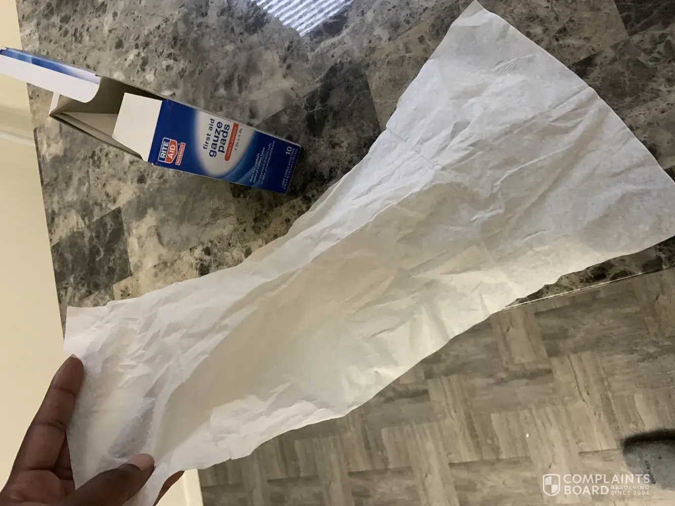 I had a surgery that required me to use gauze pads for drainage. I purchased several boxes of your company's products. After the first couple of gauze pads I used I experienced extreme irritation to the area, upon inspection of the pads I noticed there is an insert of what appears to be tissue paper inside the folded gauze squares. Since I stopped using...