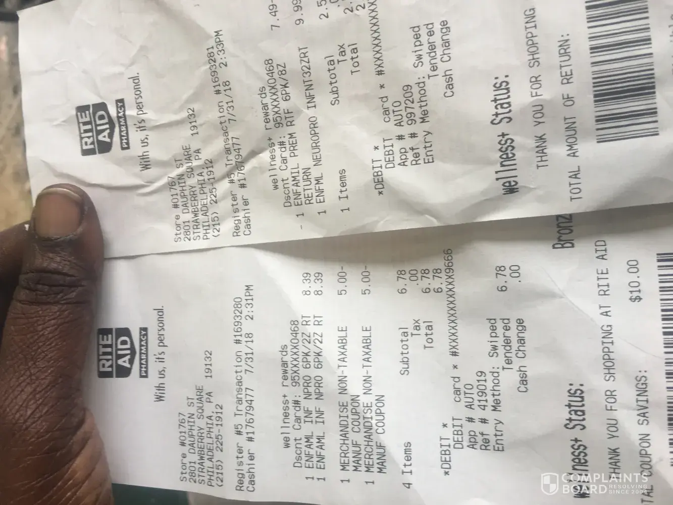 Do you realize that when you call 1 800 Rite Aid that the phone call goes right back to the store that did you dirty?
