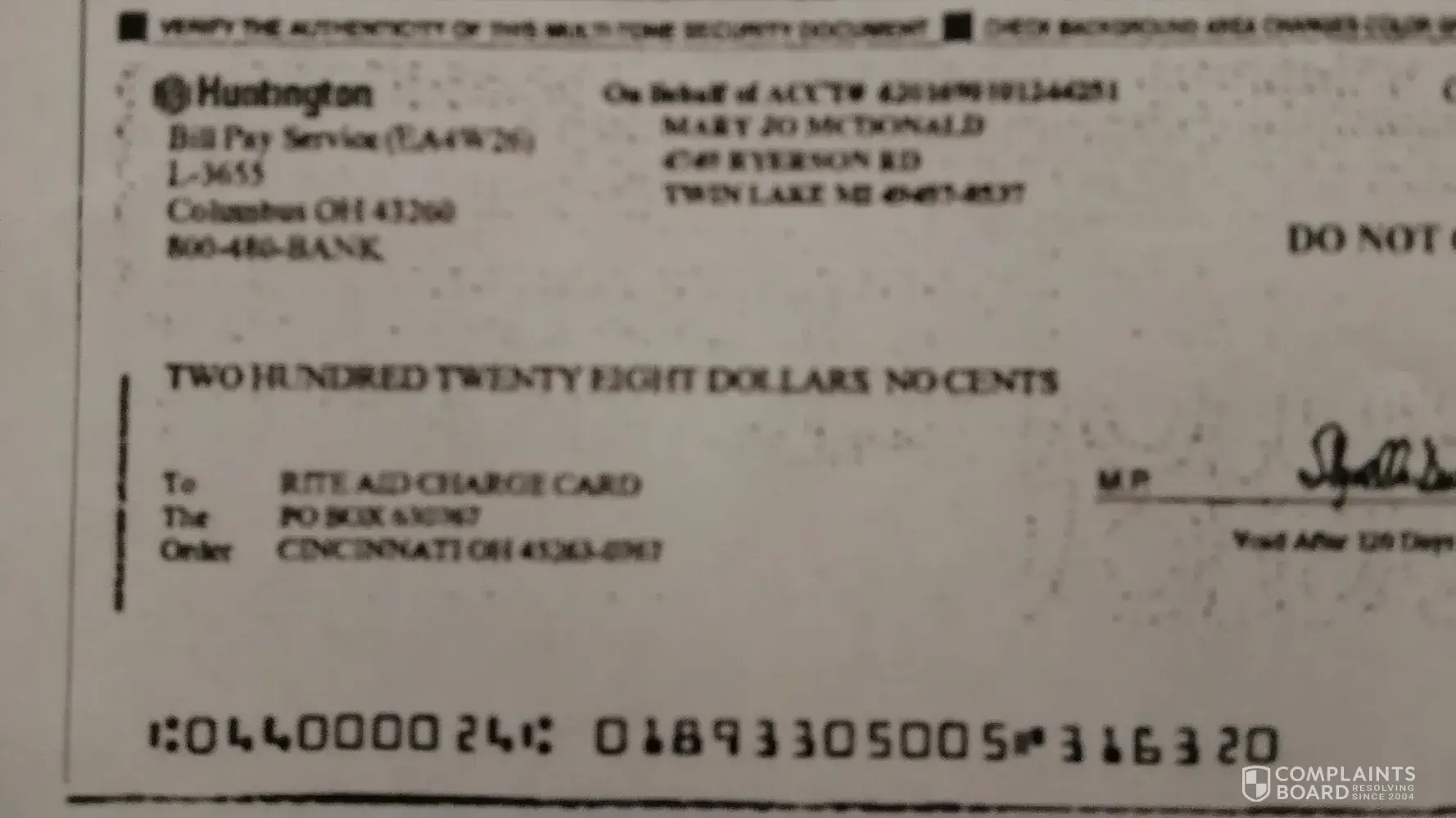 I accidently paid $228.00 to this Rite Aid account instead of my church Tithing. Thinking that the credit card would recognize the credit and refund my money back I waited until June 26th to contact Rite Aid. I did my research found the posted check, matched the numbers and date with the account and card. I spoke to a supervisor Daniel who asked me to fax my information with my email and phone number to his office fax number [protected]. Which I did. I sent it a second time on 7/9/18. I have never heard from him since. I can not speak to a customer service rep because they say my account does not exists, which is what Daniel told me. He said he went as far as to look at closed accounts and still could not find my account. I have a copy of the canceled check with the stamp showing Rite Aid cashed the checked. The burden of proof as to where is went is yours' I just would like my refund. It seems to me this could be a problem in your system. I would be happy to send you all of my information with the documentation if the pictures below are not giving you the information you need.