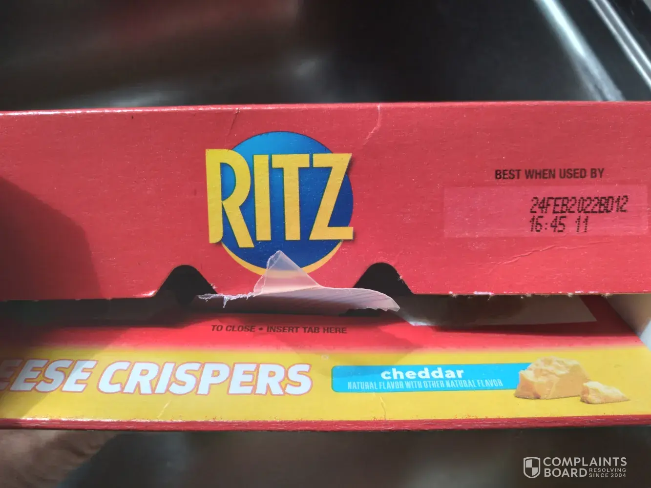 05May22AA209 17:44 upc [protected] Ritz snow flake crackers sleeves were not sealed inside box 3 of 4 were open and stale.