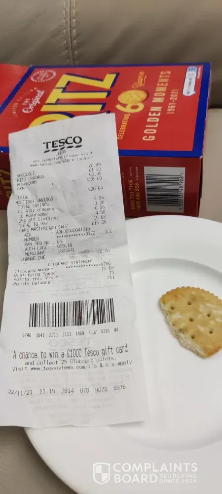 I am complaining about the box of ritz biscuits I bought from tesco.