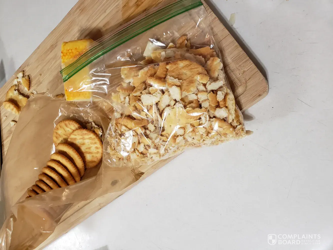 What a mess. Every time I open a container or package of Ritz crackers all I get is crumbles almost instantly. I'm tired of spending really good money on your name brand crackers that I have always liked but now fall apart at the touch. You can't even put butter on them without them crumbling, this is absolutely ridiculous! Until Ritz cracker company get something figured out I will buy something else. These are not worth $.25 a box.