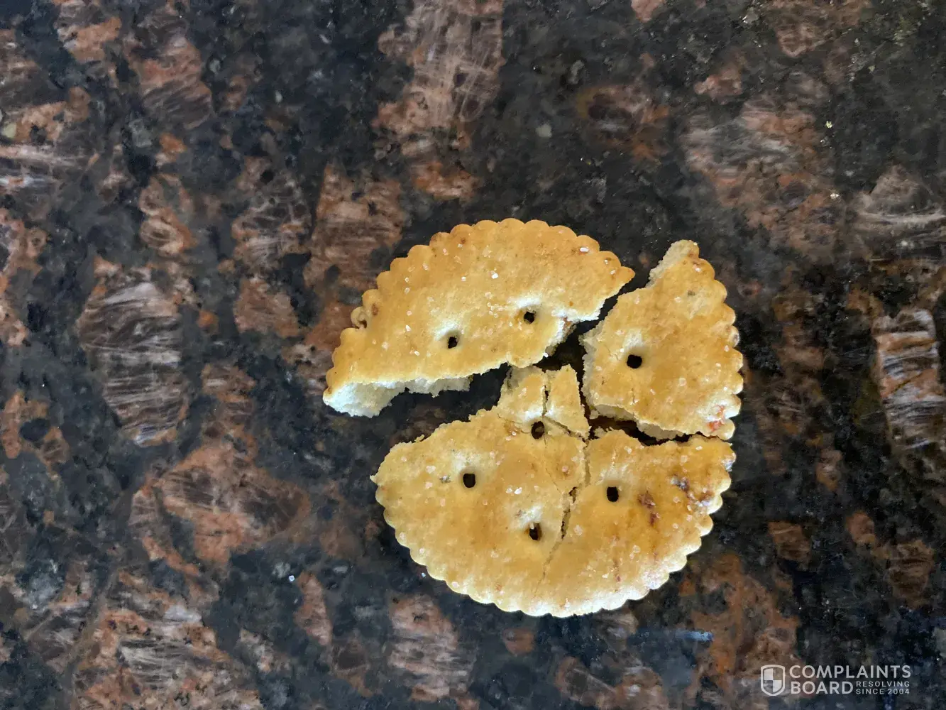 I spend a lot of money on having a football party and I bought five boxes of Ritz football tailgate crackers and every single one of them breaks apart as you tried to put cheese on them and my guests were very upset about not having crackers with a cheese and it messed messed my whole tailgate party up and I am very angry crumbs all over the carpet my dogs are was choked on the crumbs twice but he's okay but I am still very angry I would like you to discontinue these crackers because they are a bad design and they do not withstand cheese