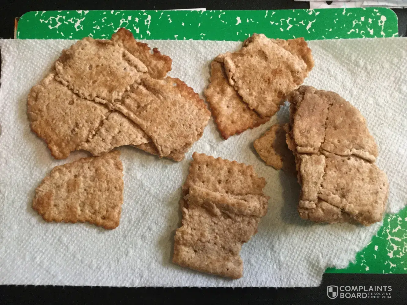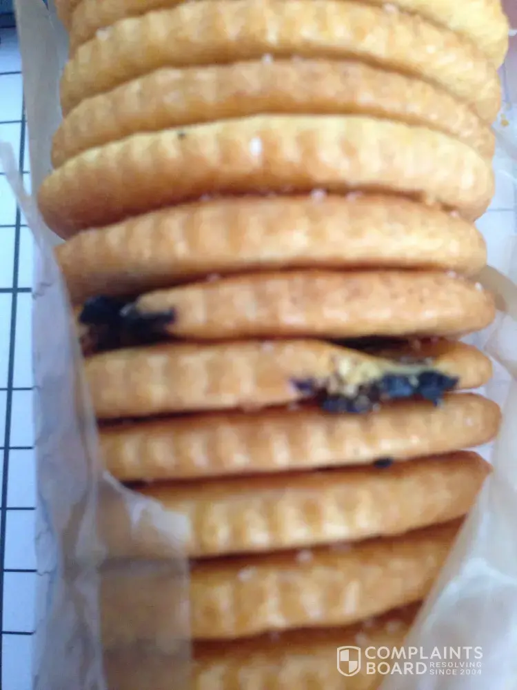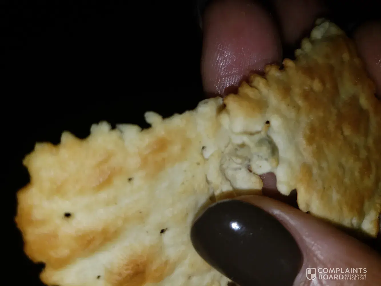 When I open up a bag of crackers there were some black "things" baked into 3 crackers. At first I thought it was marker on the outside, but when I opened it...I was disgusted to see something that looked like "bugs" baked into the crackers.