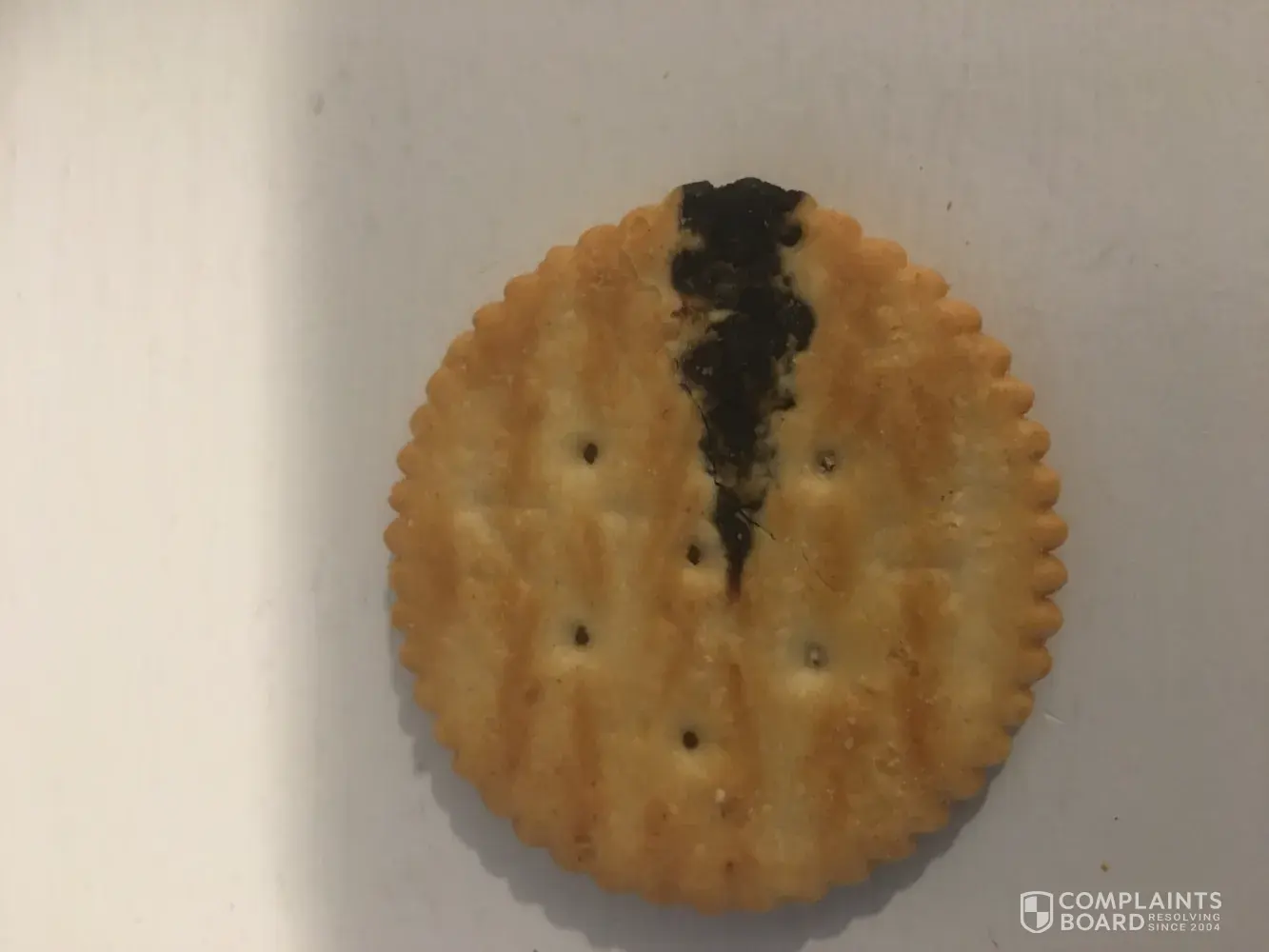 In April 2017. I send a picture of a ritz cracker that appeared to be contaminated. I received an email advising this would be looked into and a result would be communicated. At no point did I recieve feedback or compensation for this complaint. I have observed news feedback of consumer contamination of your product. Please contact me as soon as possible