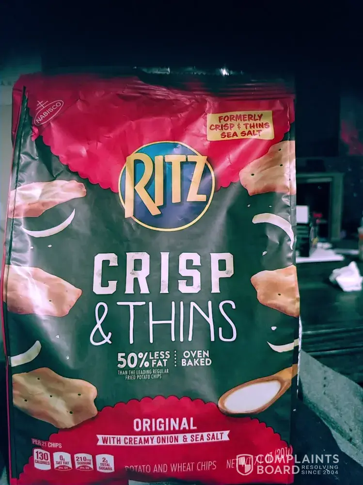 I have purchased several bags of Ritz crisp and Thins. The majority of the time they have been of good quality and I have had any complaints. I do love the taste of these. However, twice there has been an issue once from a Walmart in Salt Lake City. I got a bag and they were mostly crumbs, just little pieces, no solid pieces. I didn't think to complain but recently I bought another bag and this one was a cream cheese and onion bag. I got that at Smith's in Salt Lake City on 900 West. This bag had no flavor of cream cheese and onion. Just a plain taste. No flavor whatsoever!