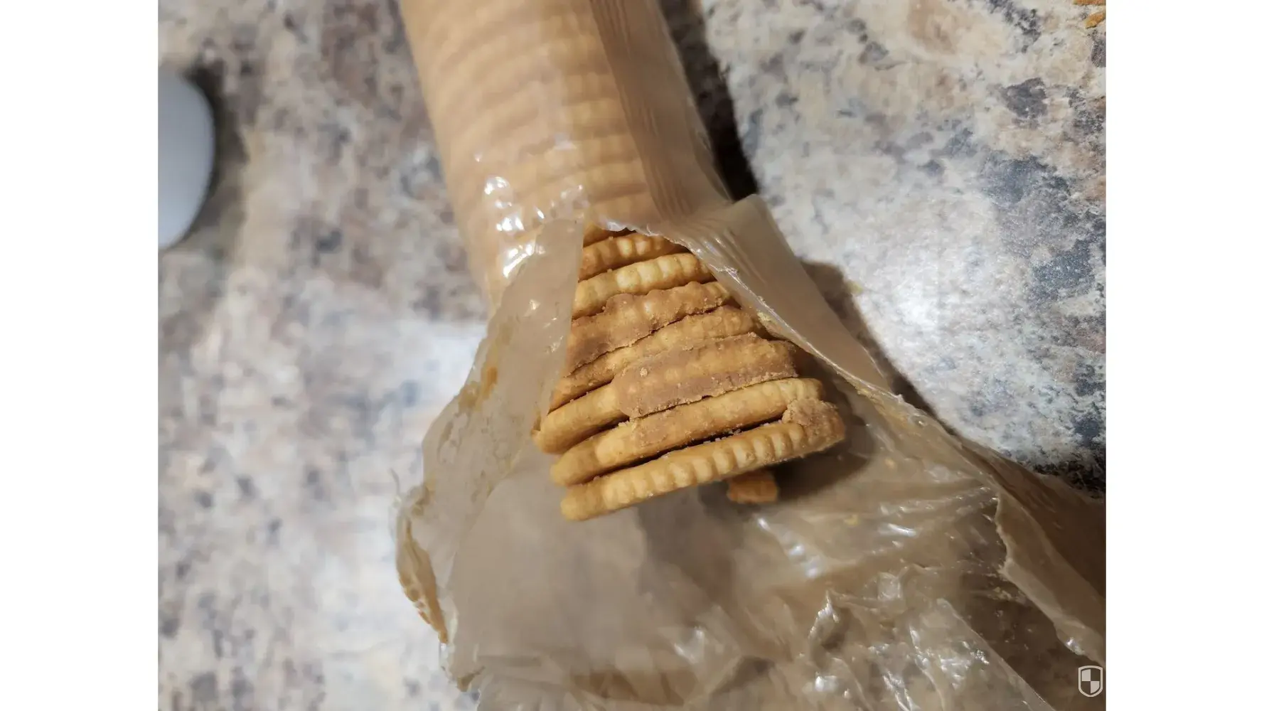 The crackers have been placed in a bag and is it my refrigerator in case someone wants to see them.