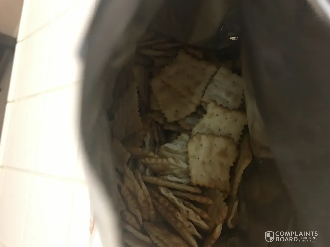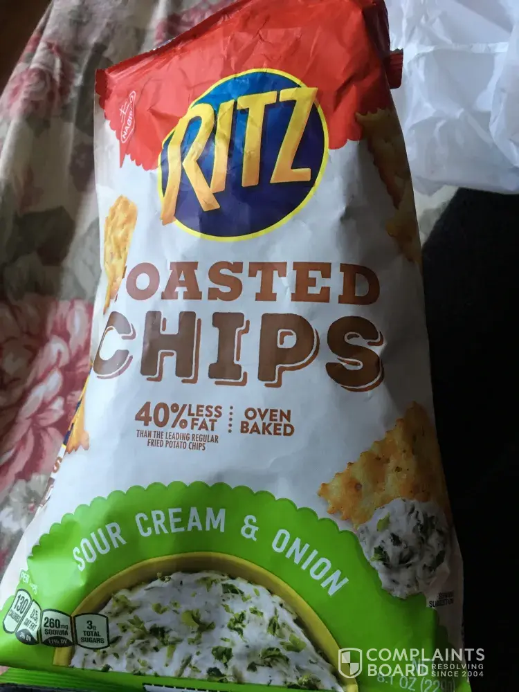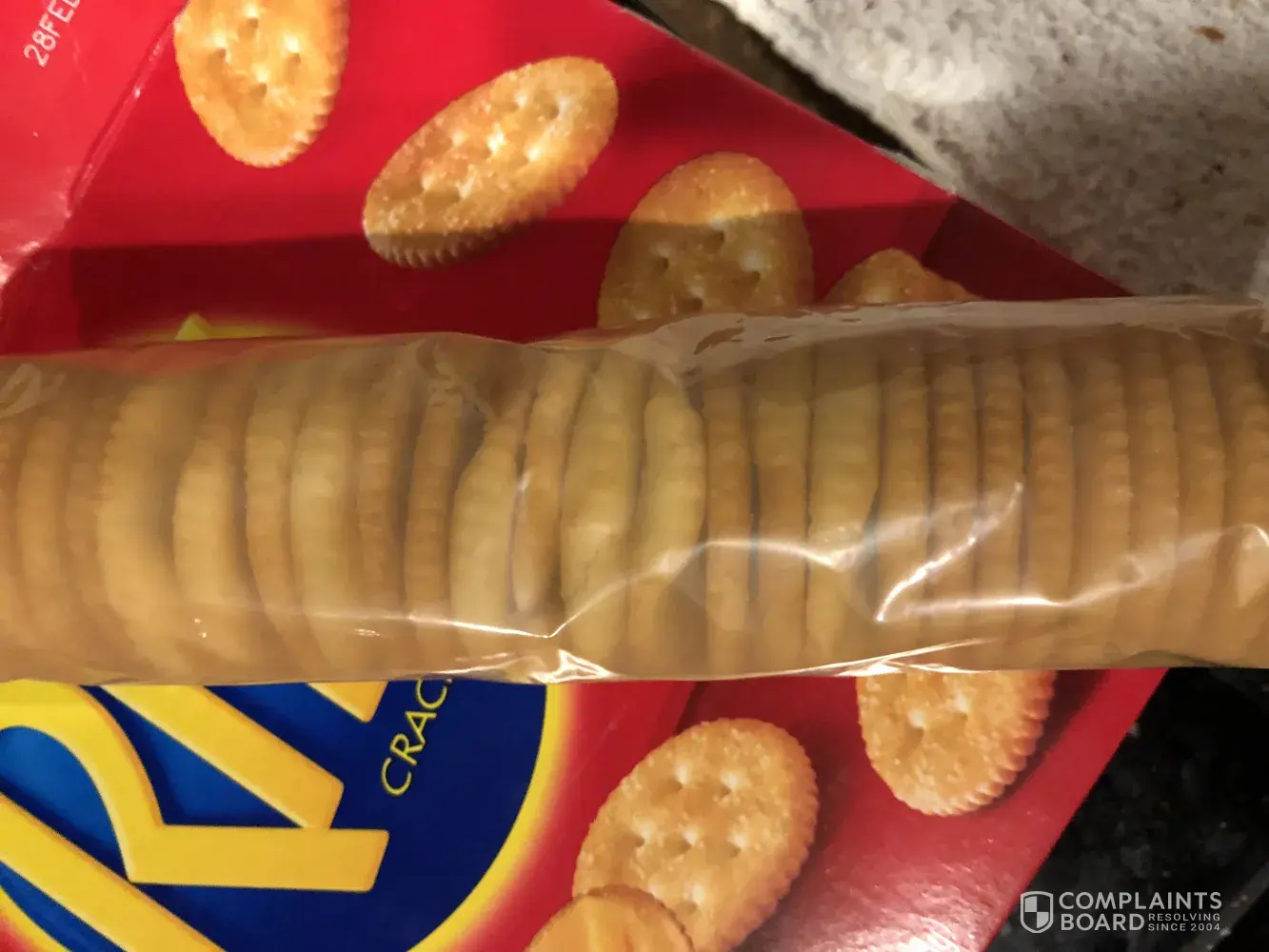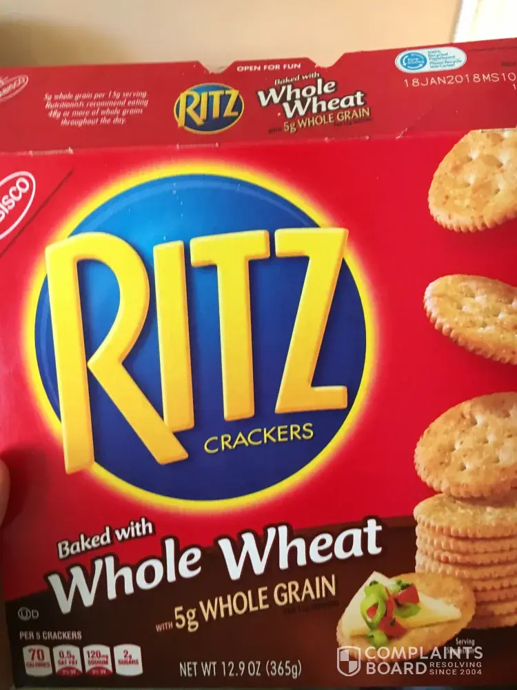 I bought ritz crackers and they were all open! Each sleeve had a long tear in them! My name is laurie deycaza! My address is 5325 W. 34th Place, Indianapolis, IN 46224! Please send me crackers or a voucher! Thanks