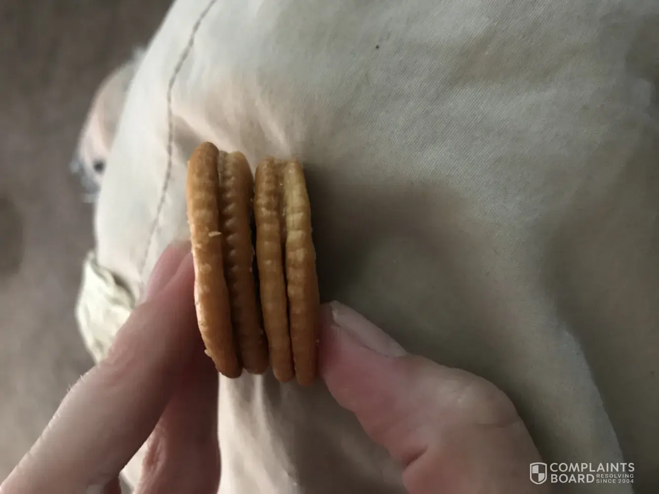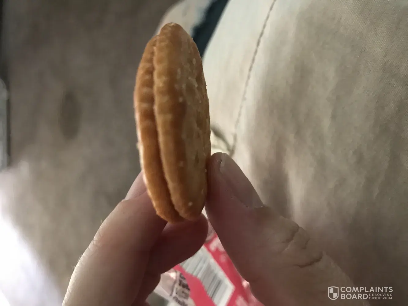 I opened a pack of peanut butter crackers and one was burnt and very disgusting. I literally almost vomited. I have included a picture. I don't how your inspection could let this be sent out