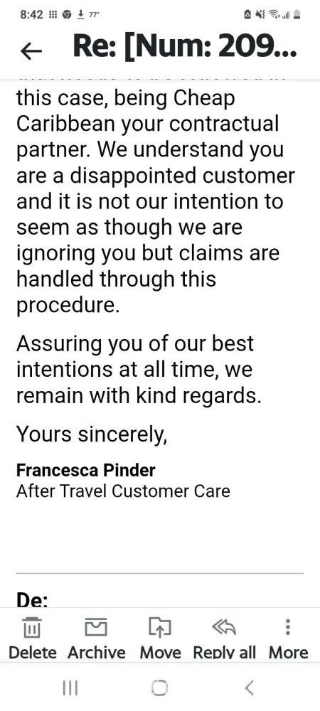 Desired outcome: Perhaps discount or compensation on our next booking