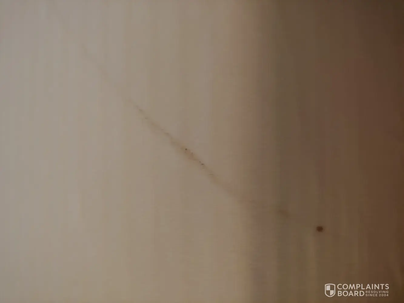 - brown stains that look like feces on bedding and shower curtains