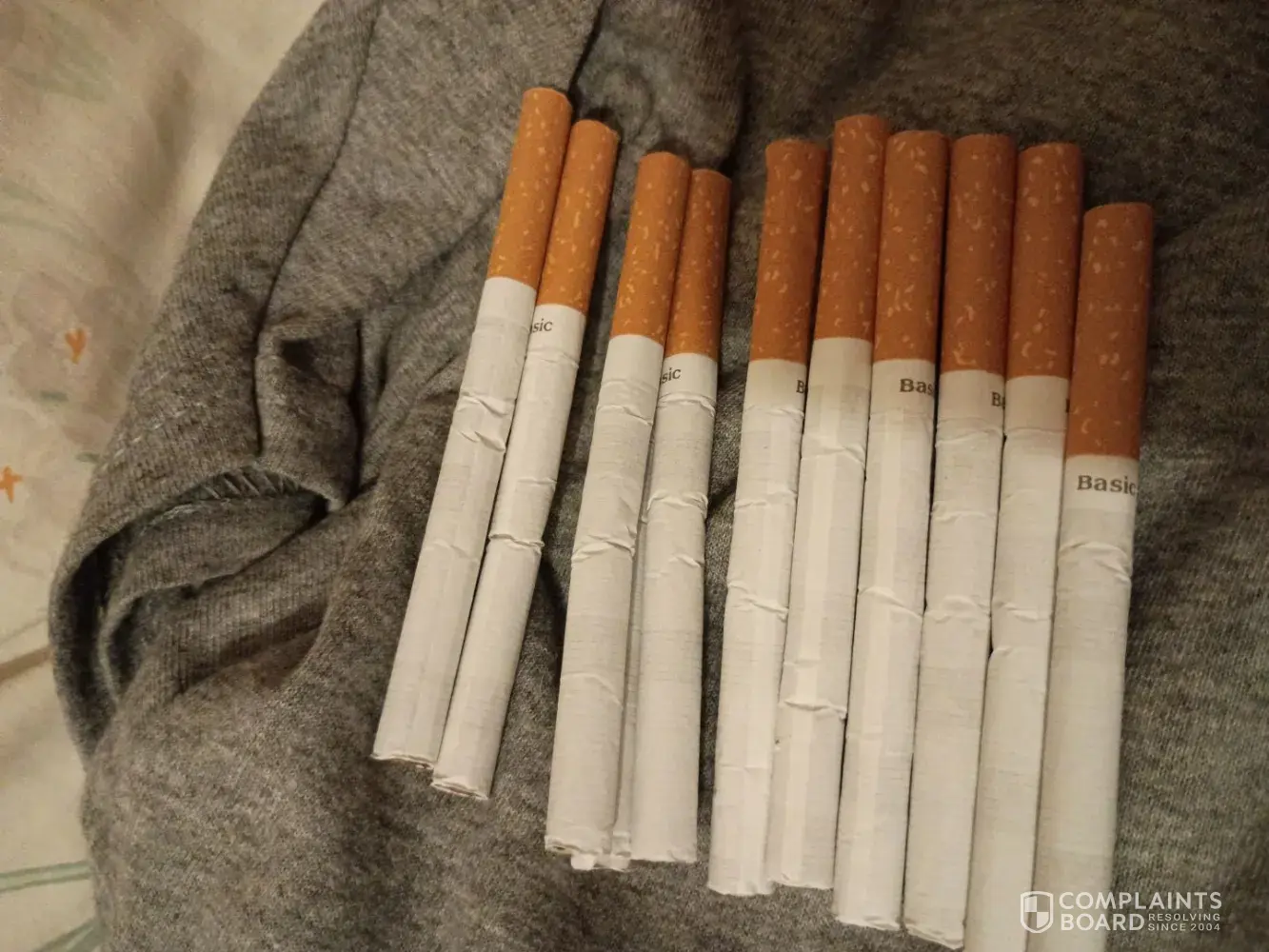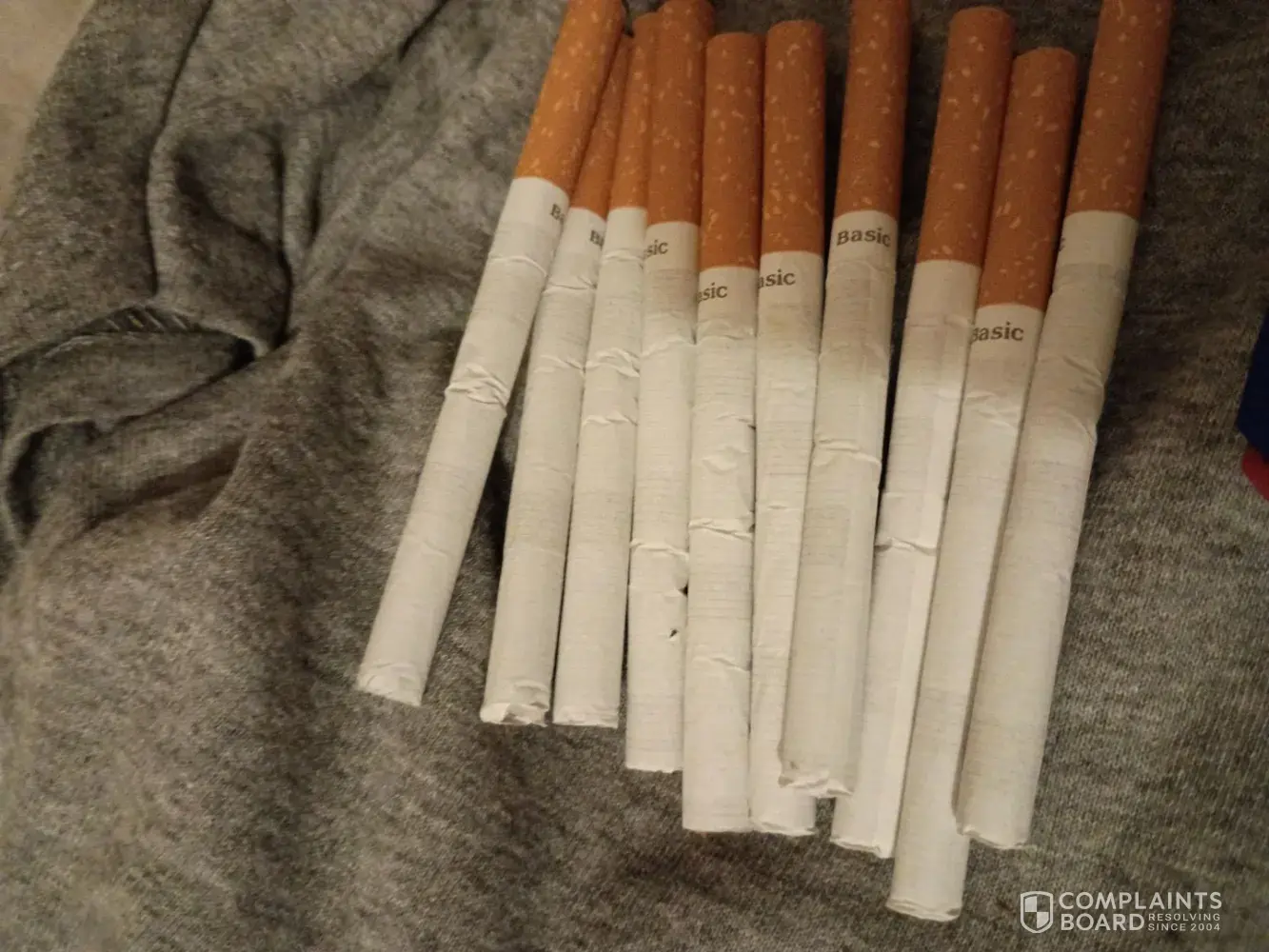 Hello my name is Melissa smith I have smoked your brand for quite a few years and never have; ever saw anything like this until today I purchased 4 packs of the basic full flavor 100 s and the cigarettes after I opened them look like they have oil all over the paper it's rolled in and I was wondering if mabey there was a mishap to be fair I've only opened 2 of the packs and I'm afraid to smoke them for fear of getting whatever is on them in my lungs my email address is blackhairbrowneyesf male@gmail.com if you could reach out to me with a solution if be appreciative thank you and have a wonderful day !