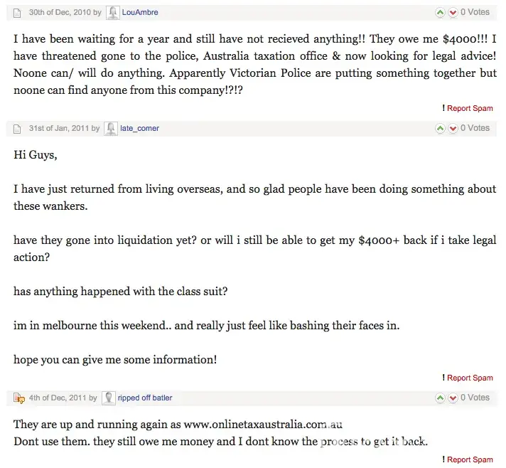 Unfortunately the letter addressed to the Complaints Board concerning the online tax business TRA has appeared in the Google listing under Frangipani Bed & Breakfast. This business address was given with the intention of helping people to effectively recover their losses. But another unrelated business also with the name Frangipani & also located in Port Douglas may have inadvertently been affected. For this reason the people representing P Douglas wish to remove the post by deeming the matter resolved. They wish to express their sincere apologies to the second business & hope that in the six months the post was accessable, this business didn't suffer. They hope the people to whom this letter was addressed, whose furious letters appear on the Complaints Board 'have' benefitted.