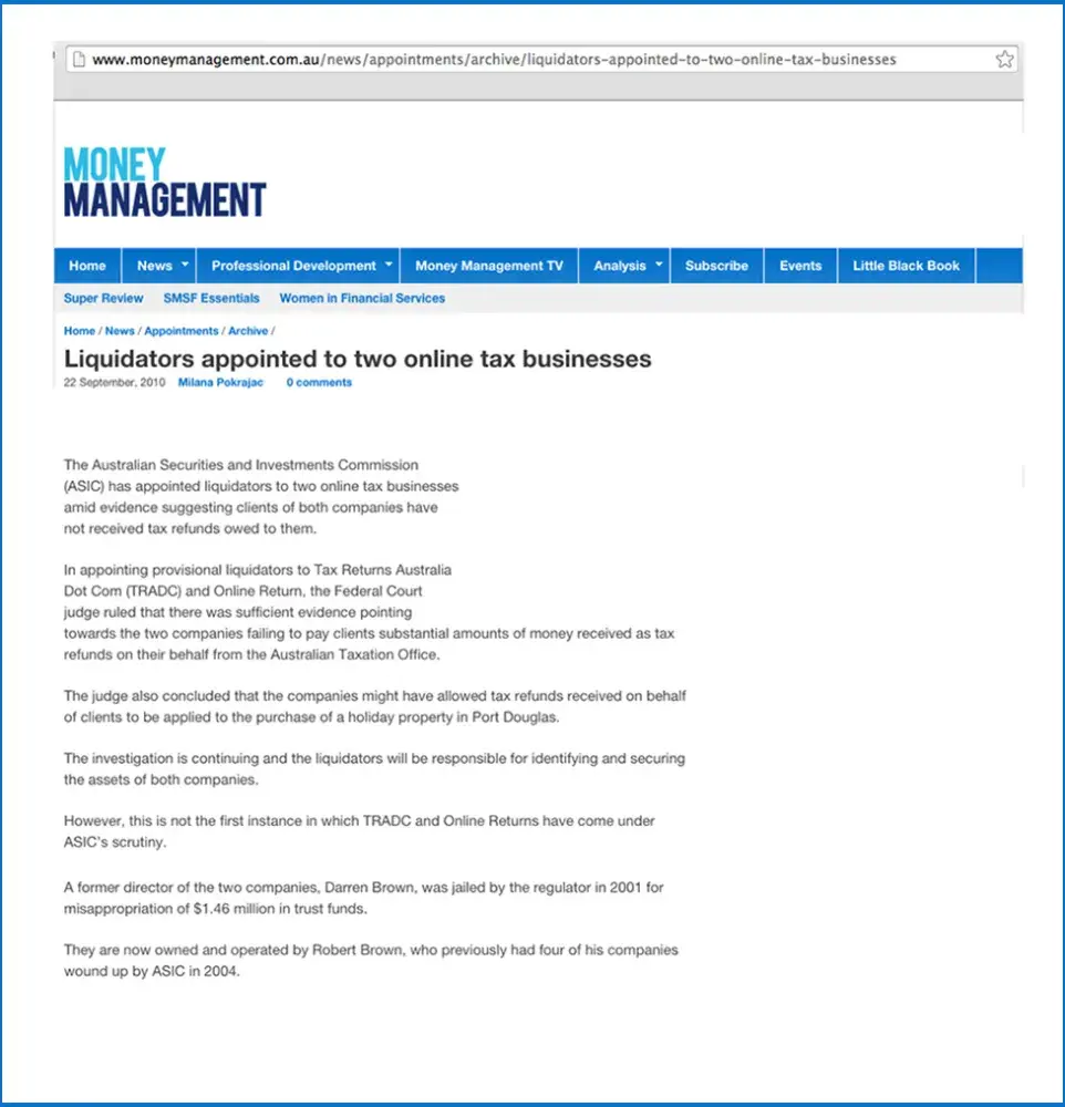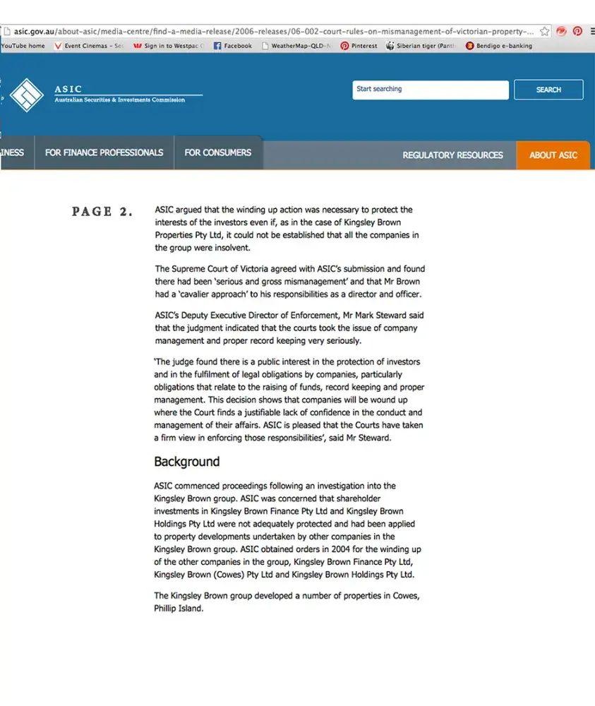 Robert Kingsley Brown 'FRAUD" *ASIC *Money Management *The Age
