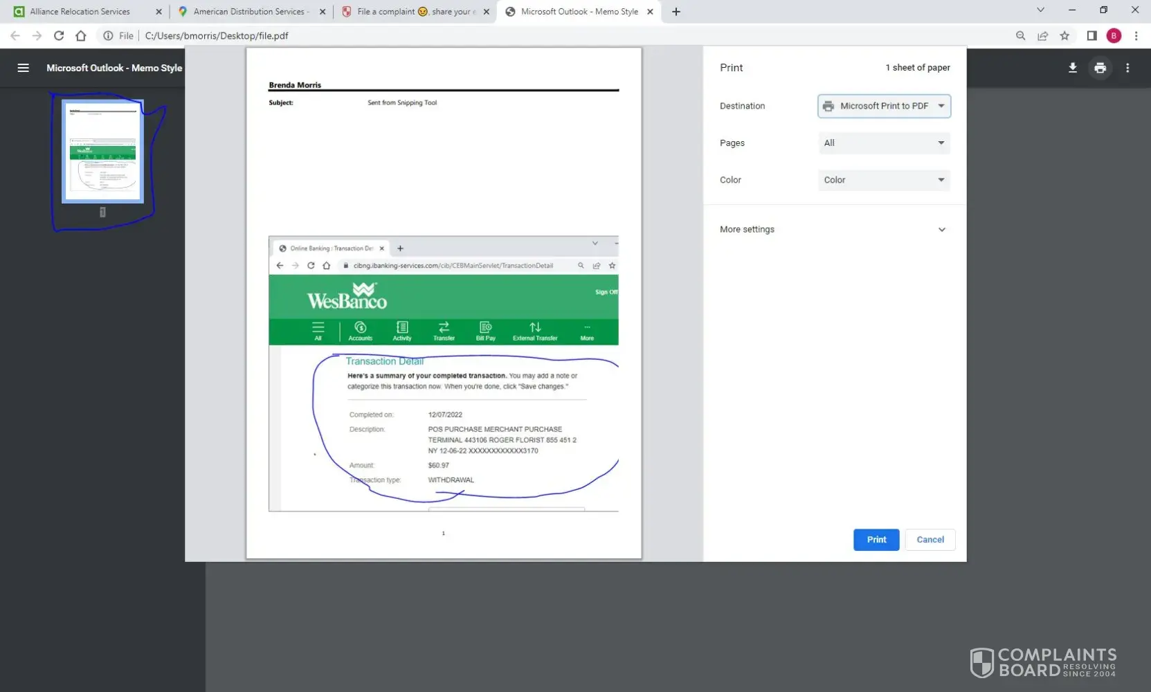 Desired outcome: That they will be closed down my bank cancels this because all the complaints are the same thing over and over