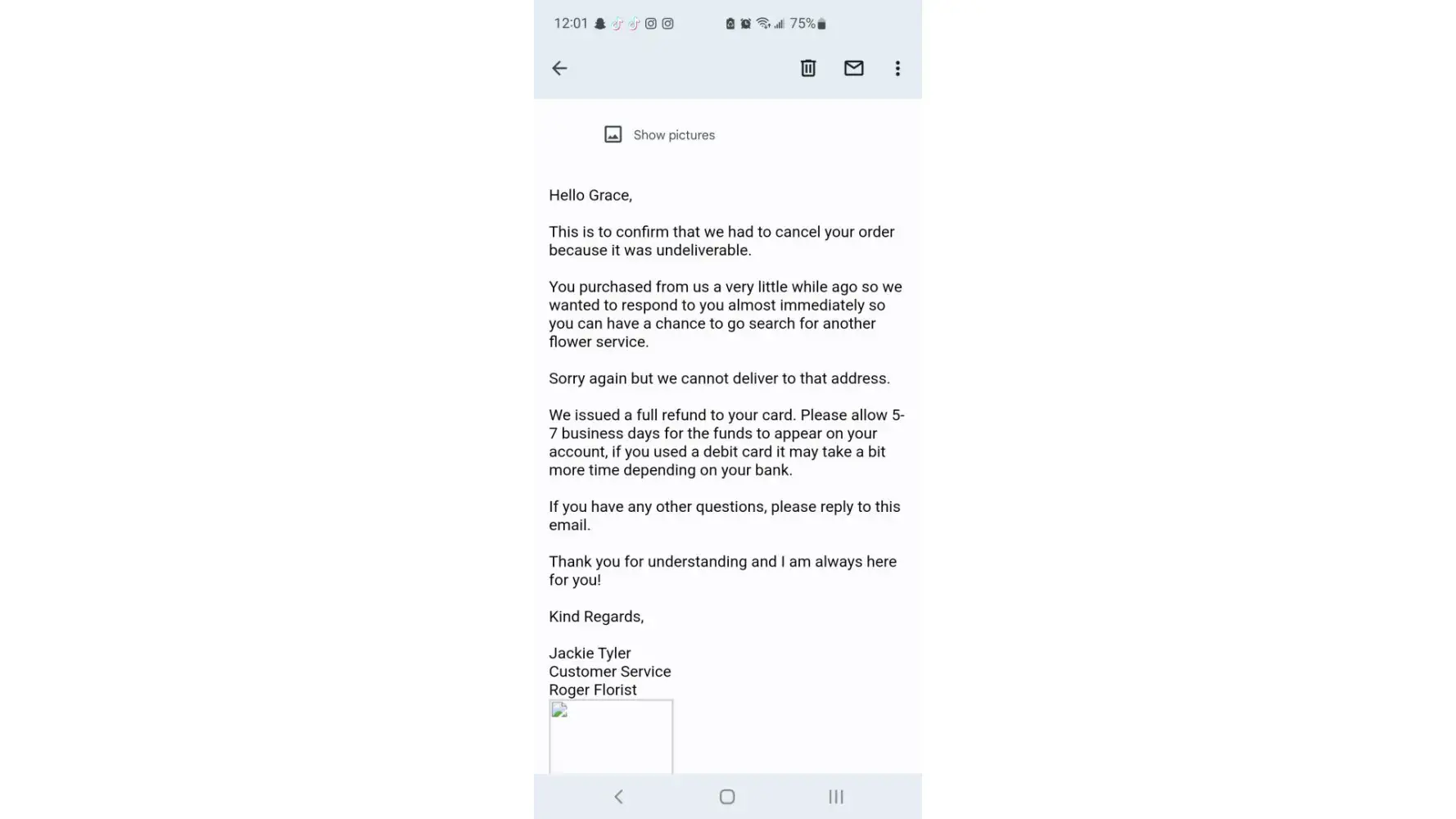 WOW this is the worst company. I wish I would of seen these reviews before I ordered. Instead, their website shows a review rating of 4.9, how is that OK to have that falsely displayed on their website and there’s no way to add a review there. So I found out my order was cancelled but wasn’t even notified! I didn’t know the flowers weren’t delivered until I talked to my friend to find out if the flowers were nice. Shocked to find out they didn’t receive any from me. Now to get a refund.