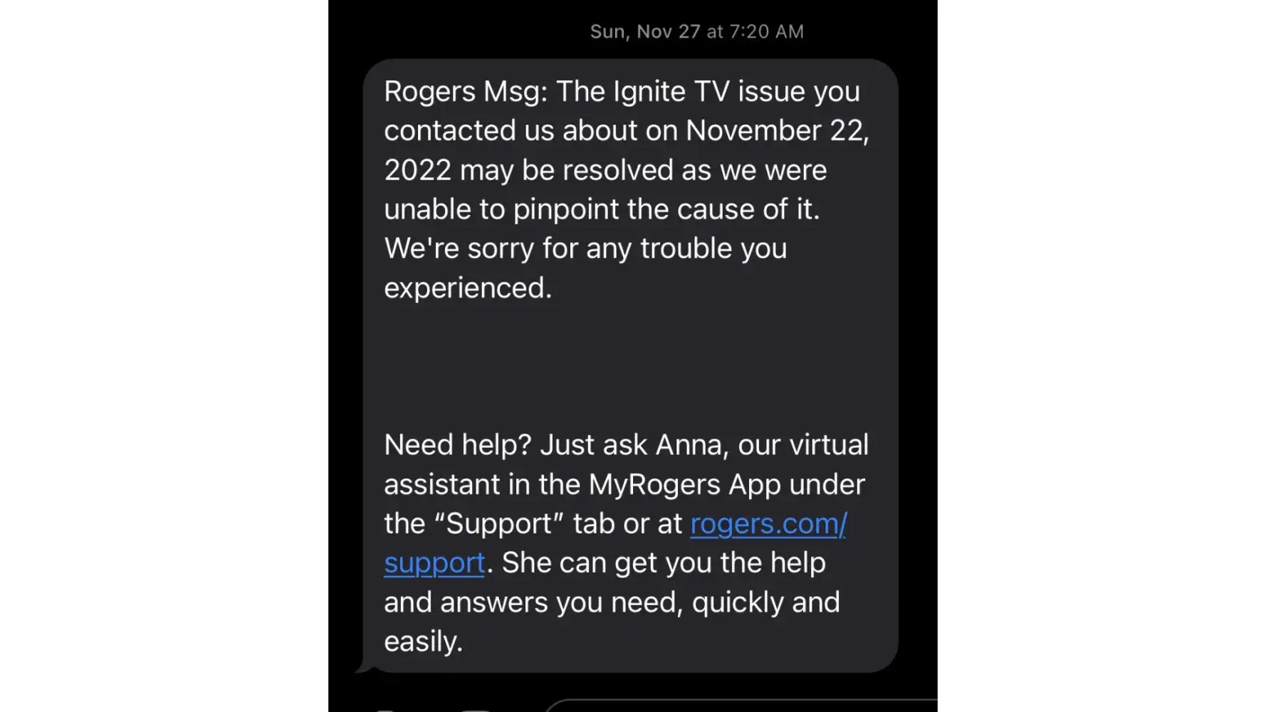 My Internet service was not working for several months. My kids would always complain about the slow and intermittent five minutes on and off Internet service. This was impacting their schoolwork and exams. I did not get a chance to call Rogers until *November 22, 2022* . It was hours long wait before I could connect to customer service. I spent another significant amount of time with the CSR but she could not help solve the issue but promised to fix the Internet. On November 27, they sent me a text message that they were unable to fix the issue and the issue may have resolved. The text stated, “Rogers Msg: The Ignite TV issue you contacted us about on November 22, 2022 may be resolved as we were unable to pinpoint the cause of it. We're sorry for any trouble you experienced."