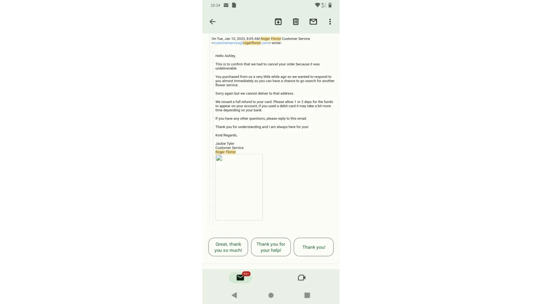 I ordered flowers from Roger flowers for my daughter's birthday on Jan 26, 2023. She did not get flowers and they will not answer calls or email. $66 and almost a week later nothing.