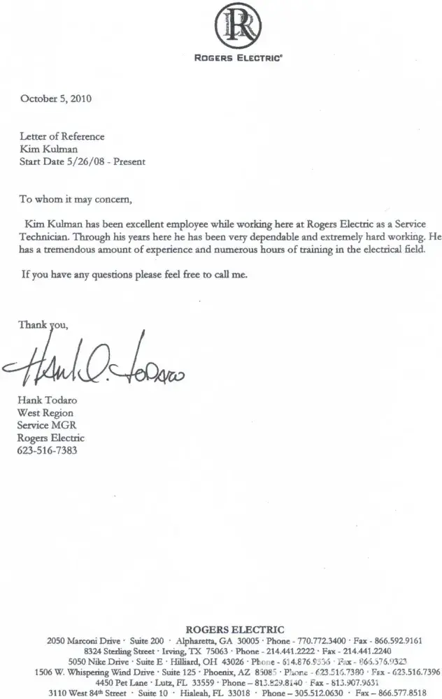 First I would like to say that I personaly have never worked for Roger's Electric in any way, shape, or form. I am however the relative of one former employee, the spouse of another former employee, and friend to yet many other former employees.