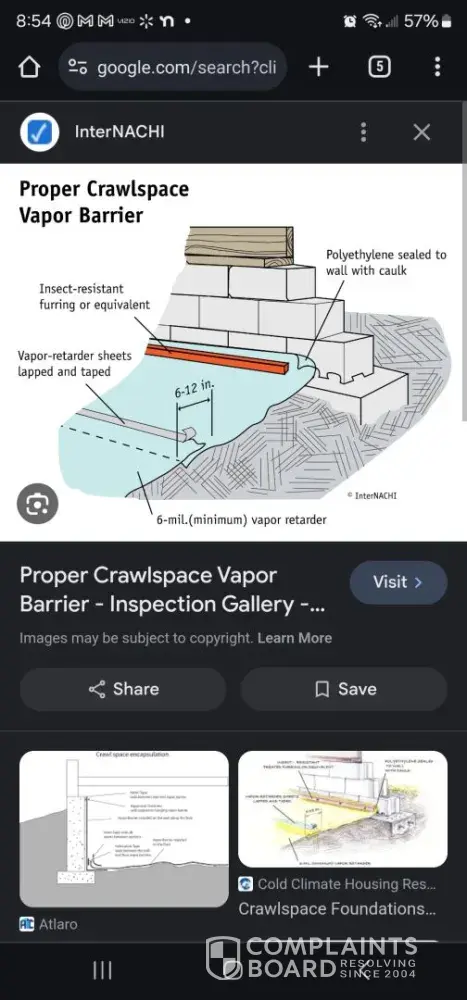 Desired outcome: I would like to be credited for the vapor barrier and then pay for the service they actually completed.