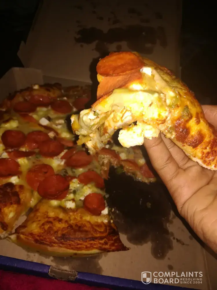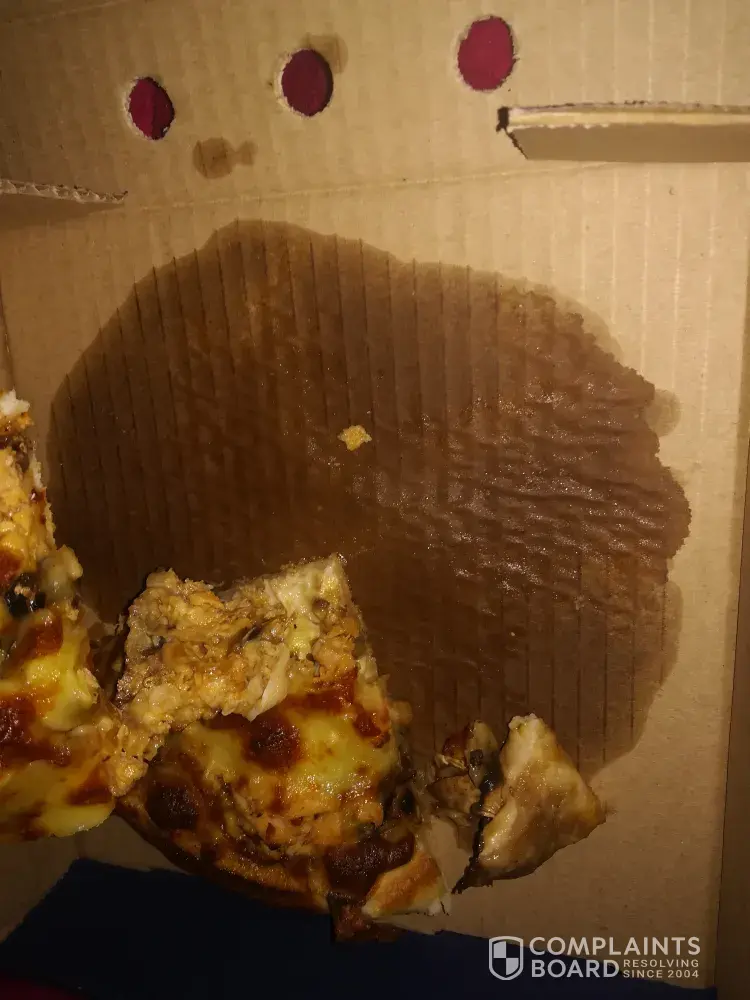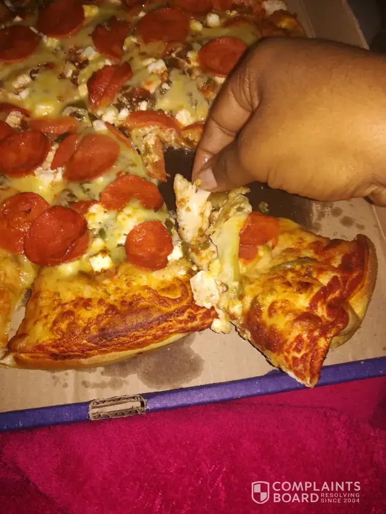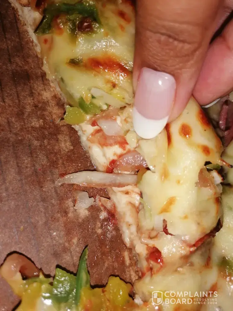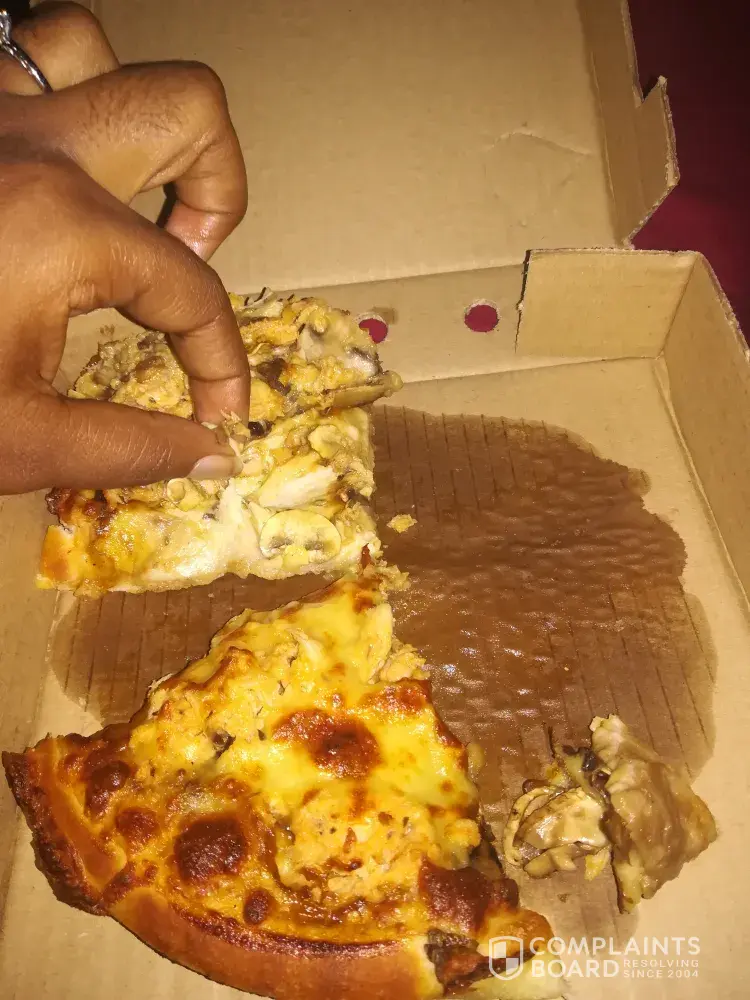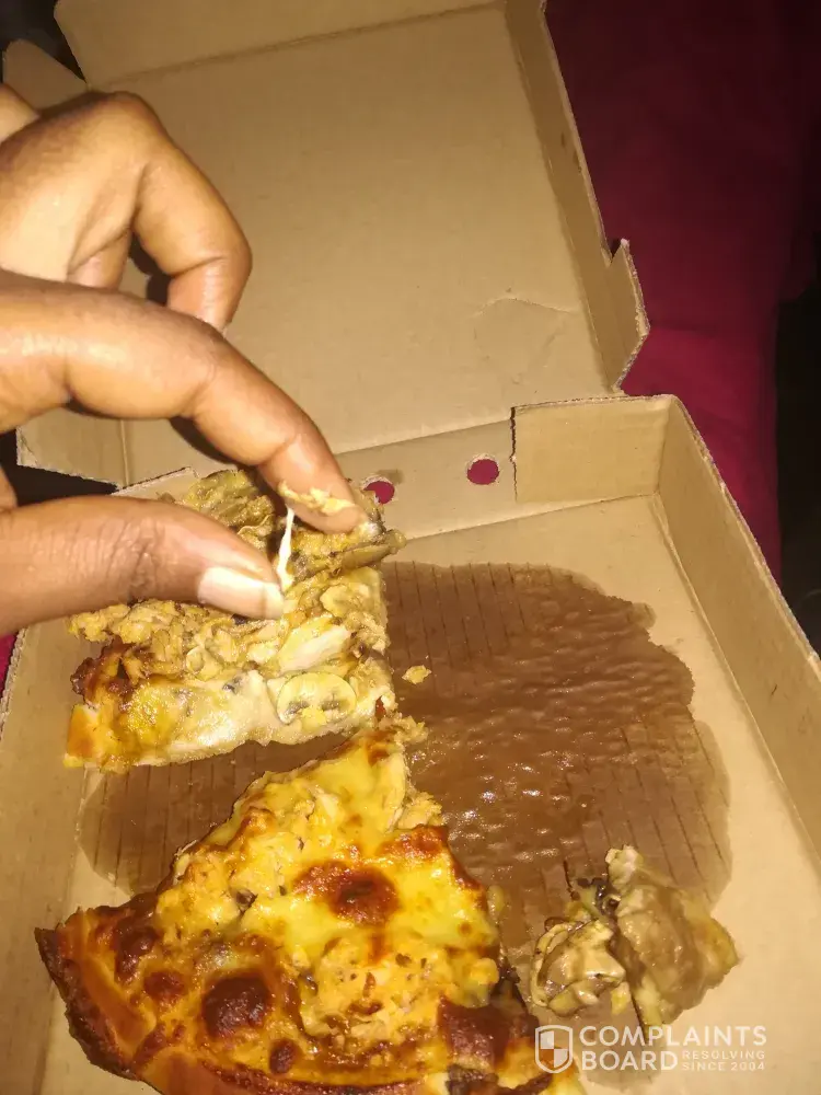 I ordered a romans pizza special R160 the large spare rib and mushroom and a bacon Supreme and when I arrived at home my little sister ate it cause she was really hungry and tasted that it was still raw I saw that it was really undercooked as u can see the dough is still raw and she is not feeling well from that slice and I personally feel I had to waste gas because I live a far distance and when I went back and they were closed I am situated in upington and I would like to get a refund/ a correction back.