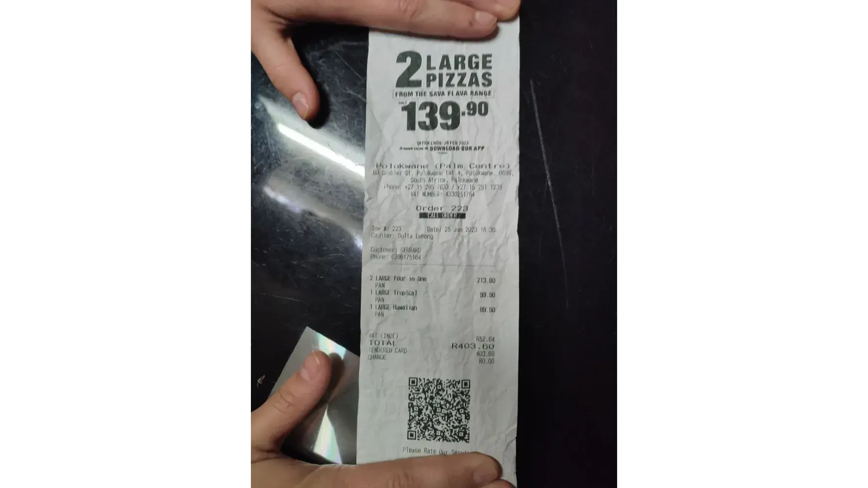 I just bought a pizza and pizza pie at pan africa mall in Alexandra.