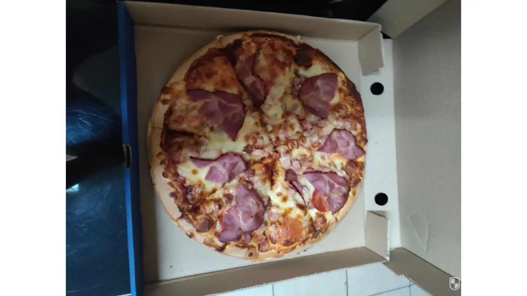 12:50 the delivery guy arrived and when he got here the card machine didn't want to work. He left the pizza and went to fetch another machine.
