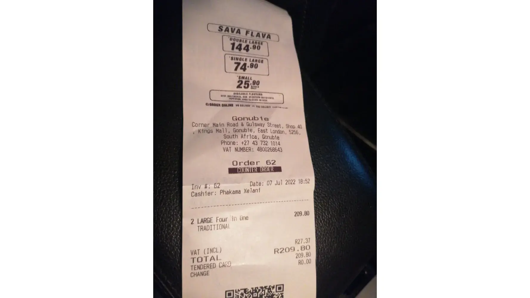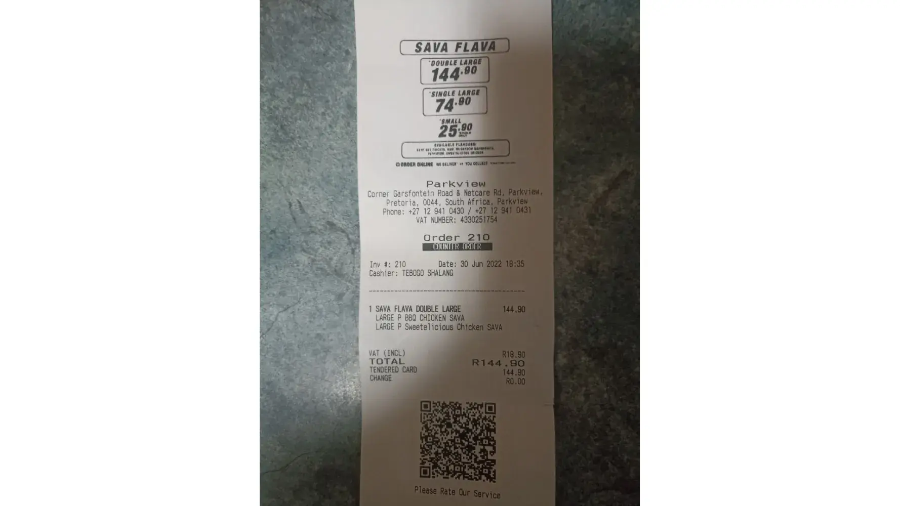 Today 30/06/2022 at about 18:35 I placed my order for a Sava flava double large pizza. After my wait which I didn't mind my ticket was called. I checked my box and realized they had messed up my order because I ordered two pan base pizza's flavours BBQ chicken and sweetelicious chicken and got the same flavours but in traditional base. I then complained and asked for them to kindly changed my order. The lady at the till Tebogo Shalang was kind and returned the pizza to the kitchen. They had a bit of a debate which I didn't pay any attention to. I was then called about 4-5 mins later and told by some man who I think is the manager that they had made a mistake and that I was given that kind of pizza for a reason because the kitchen didn't have the thick but only had the thin pizza. I then asked then what now and he didn't even bother to make any effort and said I must take the one that was there in front of me because they didn't have what I want. I honestly am very disappointed and hurt because I think we not treated the same as customers and that he took a mistake that his staff made and made it my problem as a paying customer. I am not satisfied with the treatment and service I got today and feel I wasted my time and money.