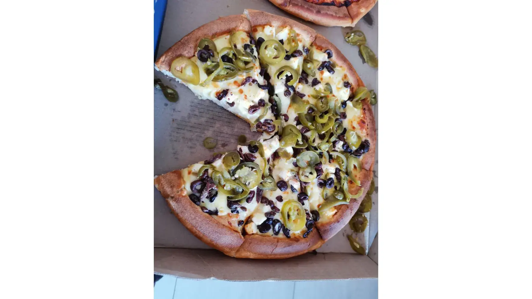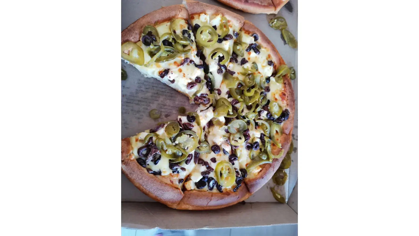The cheese tasted off as if it's been refrigerated for a while, then I asked them to put some jalapeños, they put probably an entire bottle leaving the pizza soggy and tasted briny combined with the bad cheese.