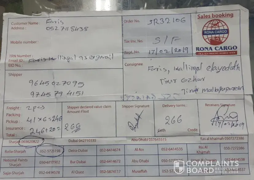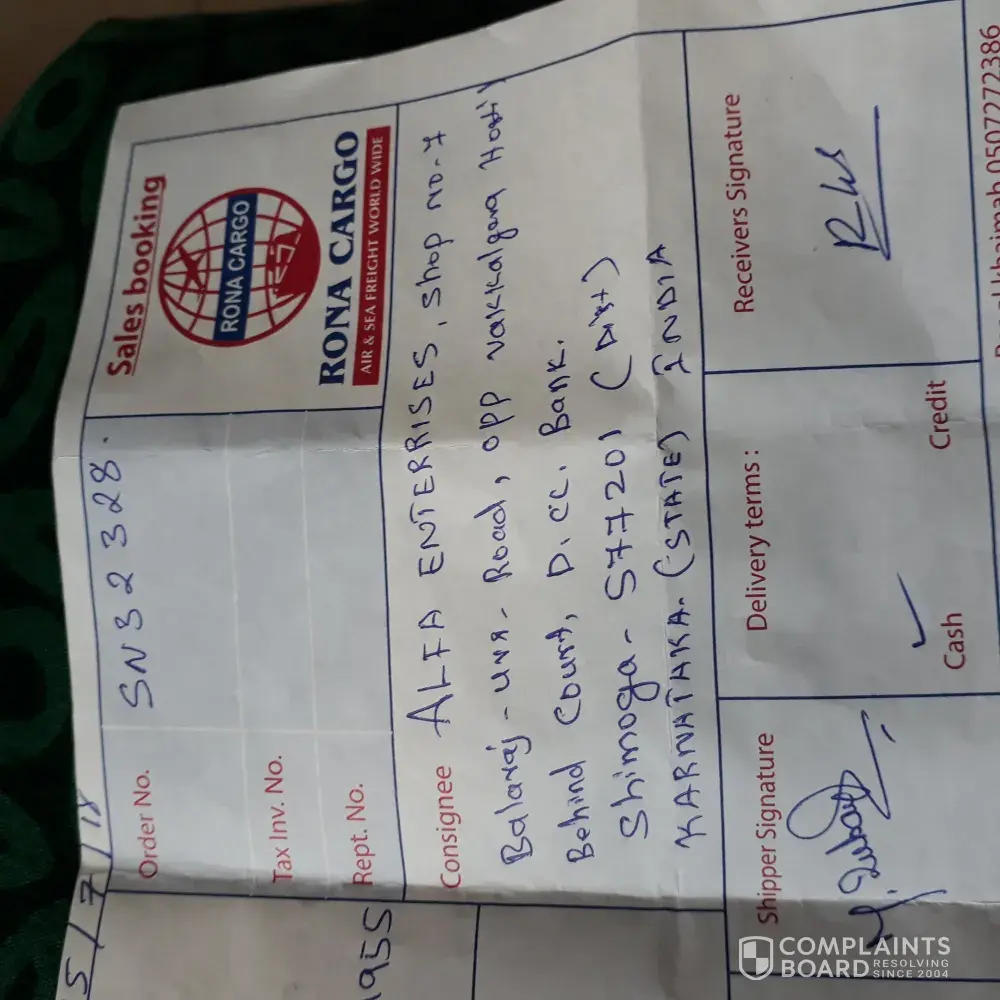Still i didnot get my cargo i have sent by air cargo through rona cargo rolla sharjah..not getting response also plz take this complaint seriously
