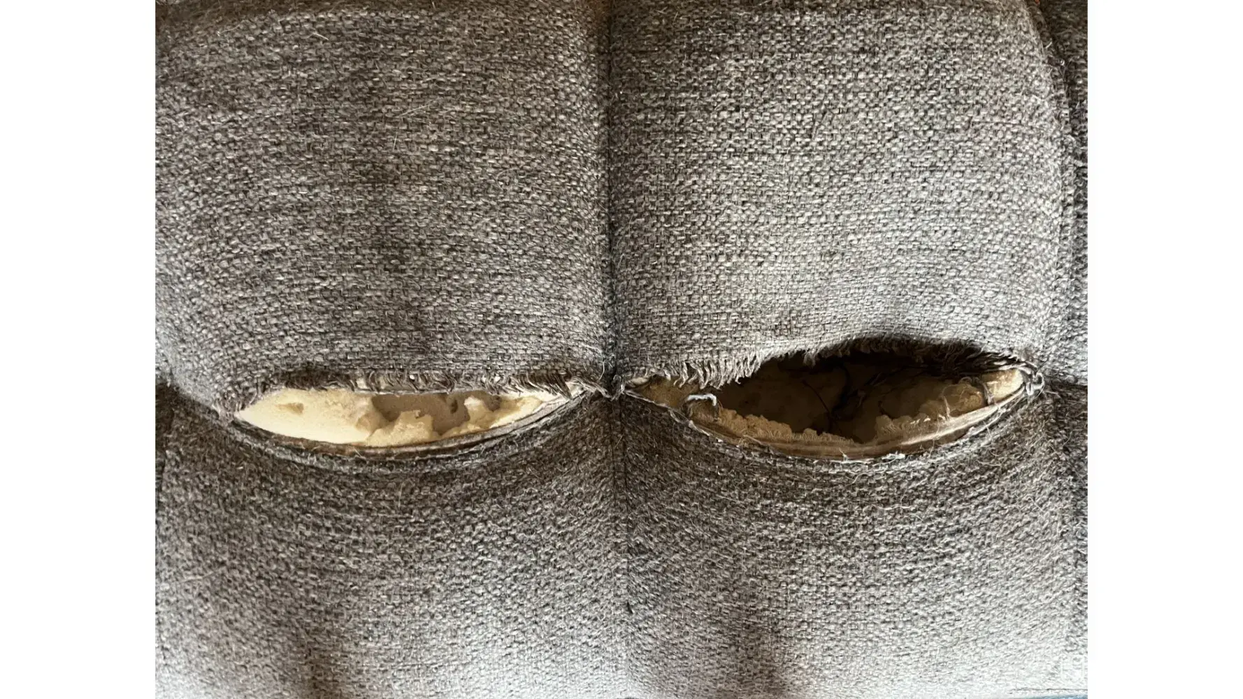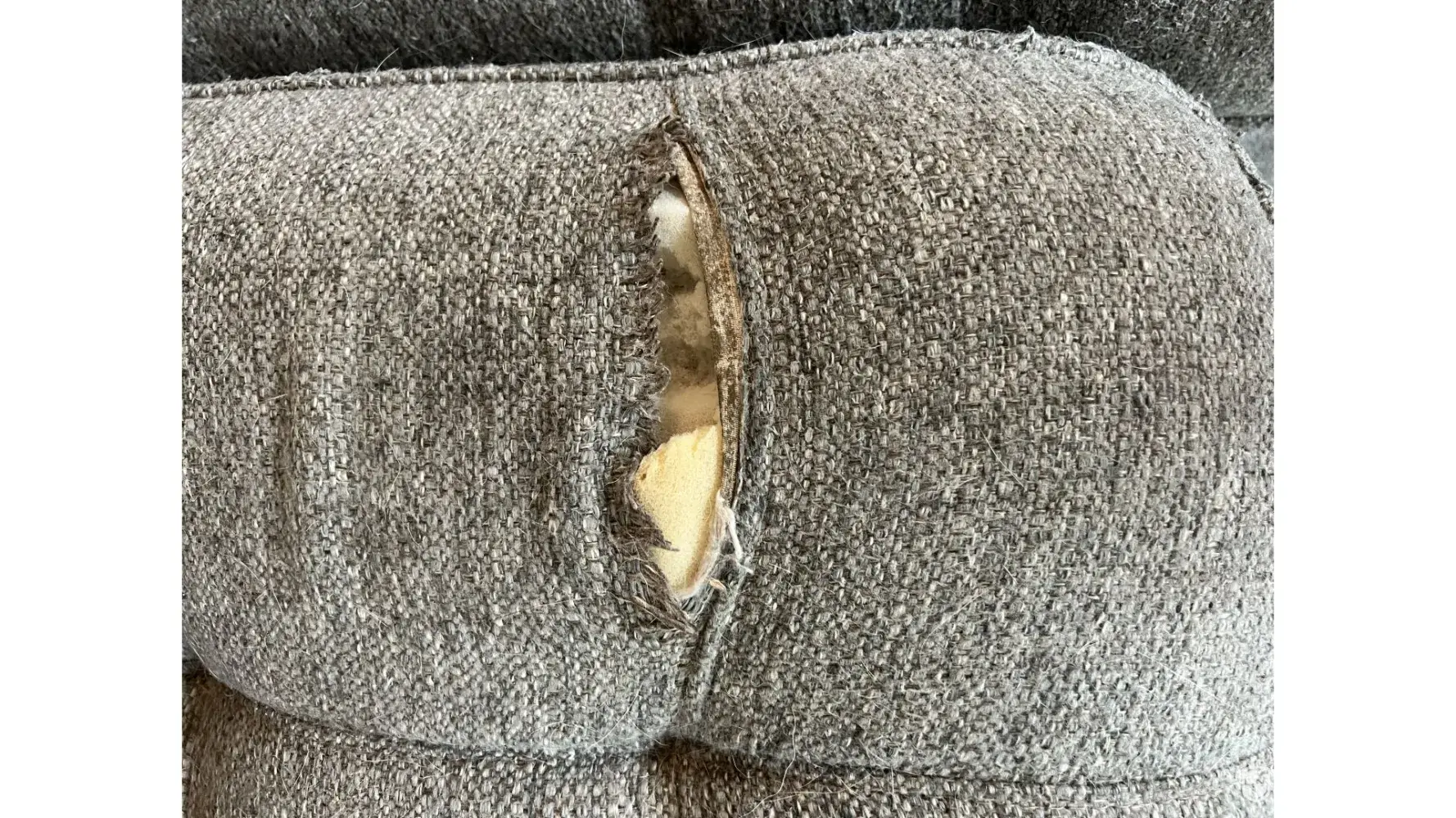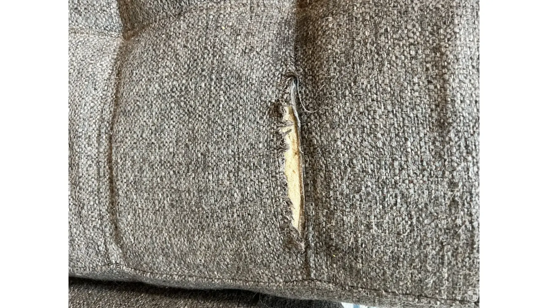 Within ONE MONTH, the couch started to rip at the seams. We placed a pet cover over the first rip to mask it, but it just kept pulling apart in other places. It is now ripped in seven places. In the first three rips, foam keeps coming out in chunks. I would have to reupholster the entire couch to salvage it. In addition, the couch cushions slowly start to slide off, even if you're just sitting on it. I have to remove the back cushions and push the seat cushions back into place every time I stand up.