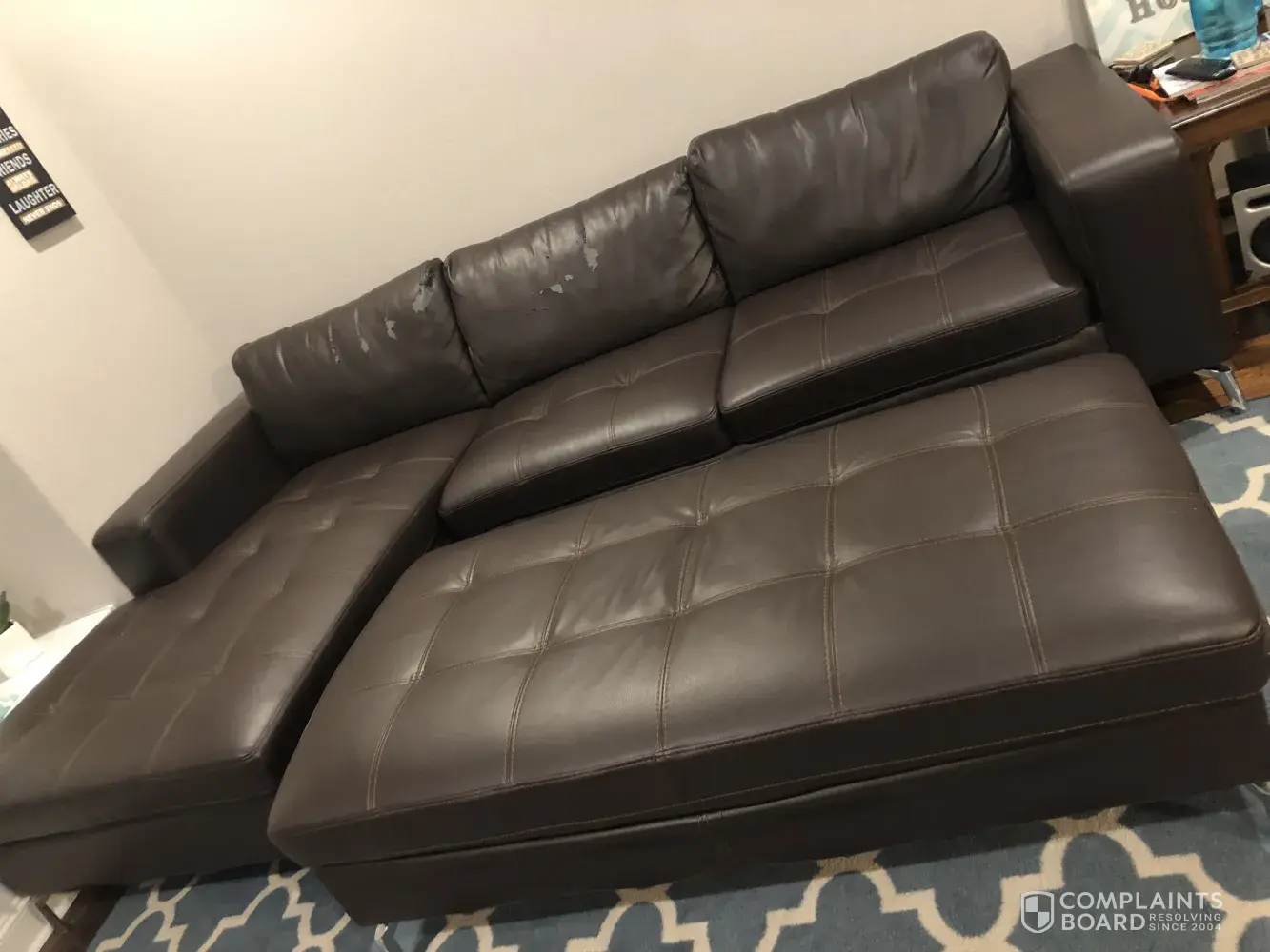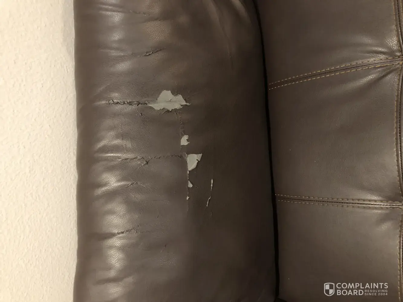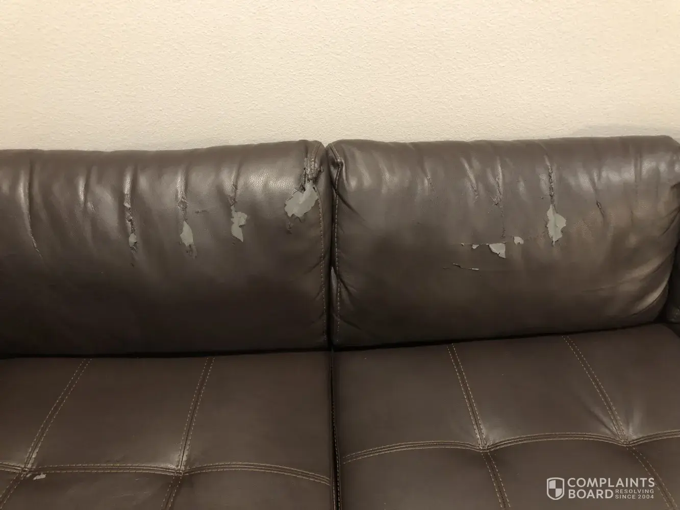 I bought this leather sectional with ottoman about 5 years ago. It's just me in the house and I barely even use the living room. I kept it conditioned with rooms to go protection products but it still started peeling badly on the cushions 2 years ago. I don't have any pets or kids and like I said, it is hardly ever sat on. I'm so disappointed because I absolutely love the look of the sectional...I just didn't think it would fall apart like this after 3 years with such little use. I'm attaching some pictures for your reference. Please let me know what you can do to remedy this situation because at this point I don't want to buy another product from rooms to go if this is the quality I can expect. I think a refund or a new couch would be an acceptable solution since I never anticipated this happening. Will never get "leather" couch again from RTG.