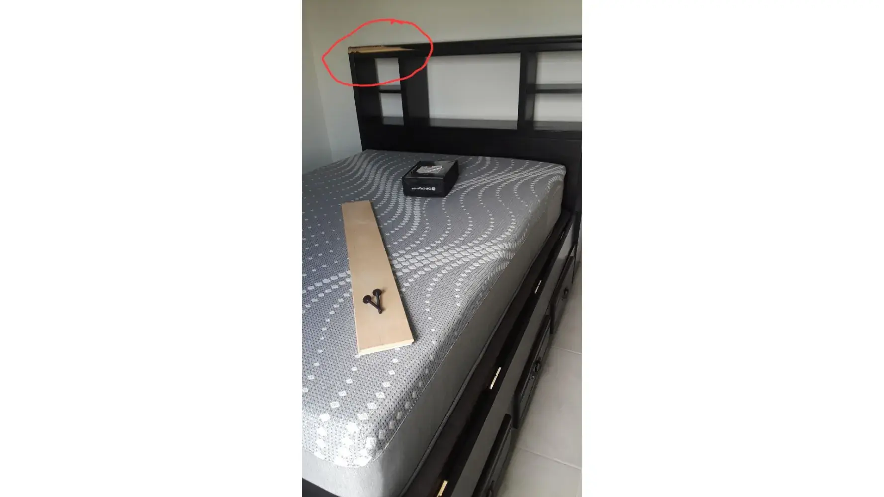 Rooms To Go bed with bookcase headboard, footboard and bottom drawers